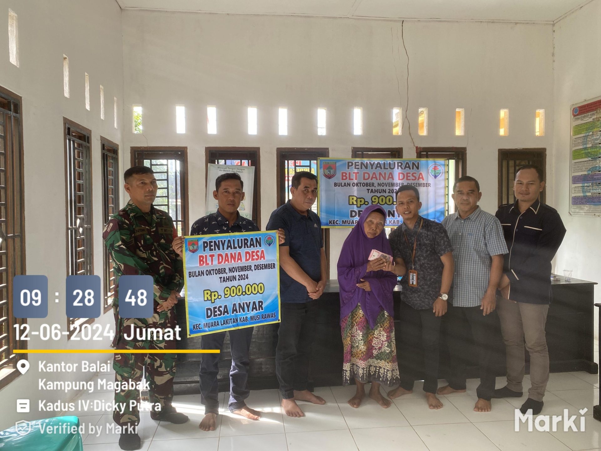 Muara Lakitan, 06 Desember 2024 – Anggota Koramil 406-04/Muara Lakitan, Sertu Antoni, menghadiri undangan pembagian Bantuan Langsung Tunai (BLT) untuk bulan Oktober, November, dan Desember di Desa Anyar, Kecamatan Muara Lakitan, Kabupaten Musi Rawas. Total bantuan yang diberikan sebesar Rp 900.000, dengan rincian Rp 300.000 per bulan.