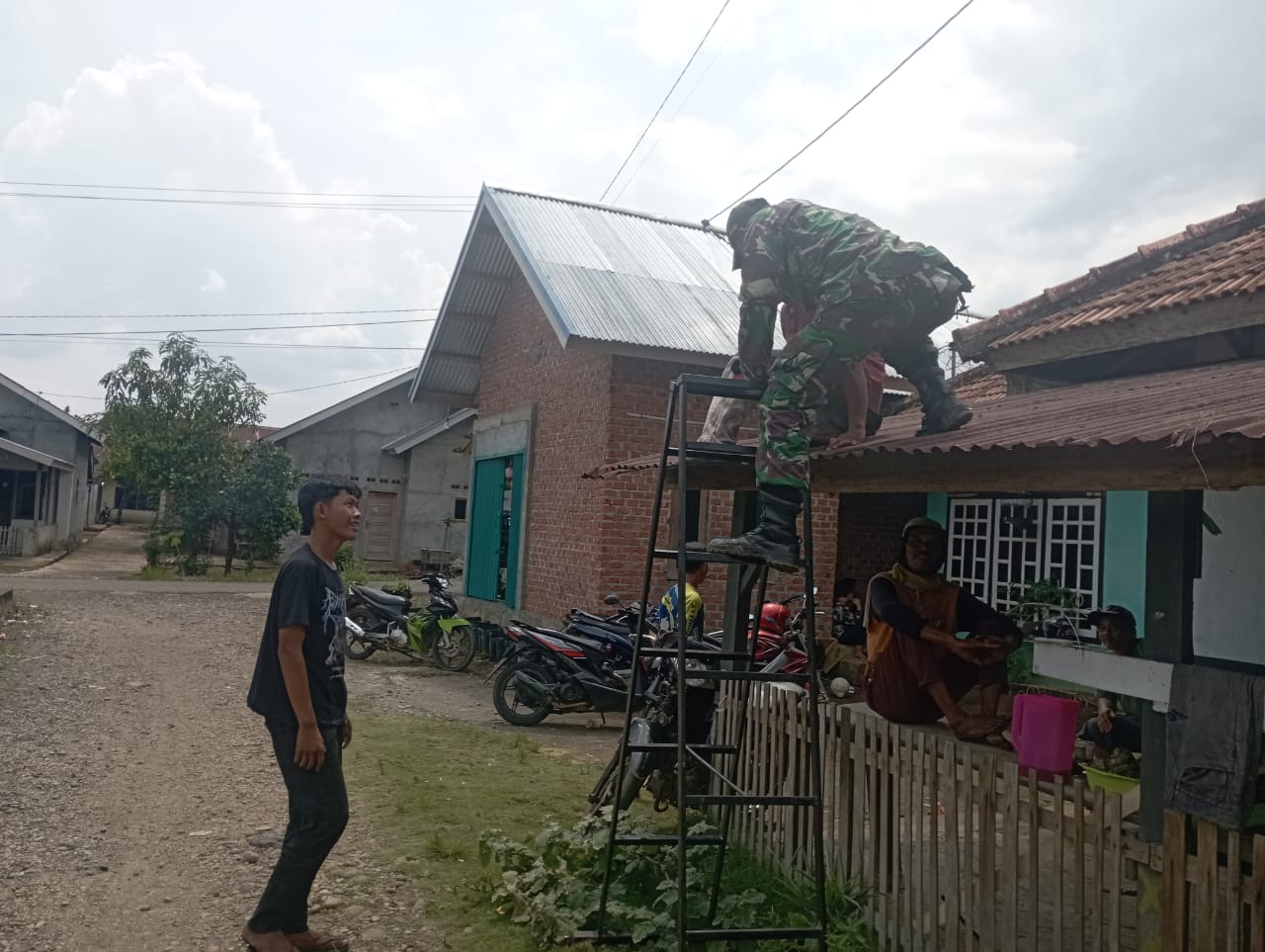 Ada Babinsa panjat atap rumah warga