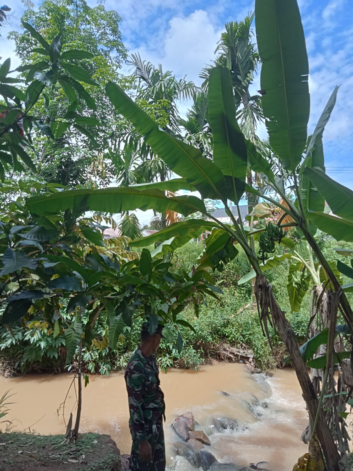 Babinsa Koramil Serda Rohman Monitoring Debit Air Sungai untuk Penanggulangan Bencana Alam di Wilayah
