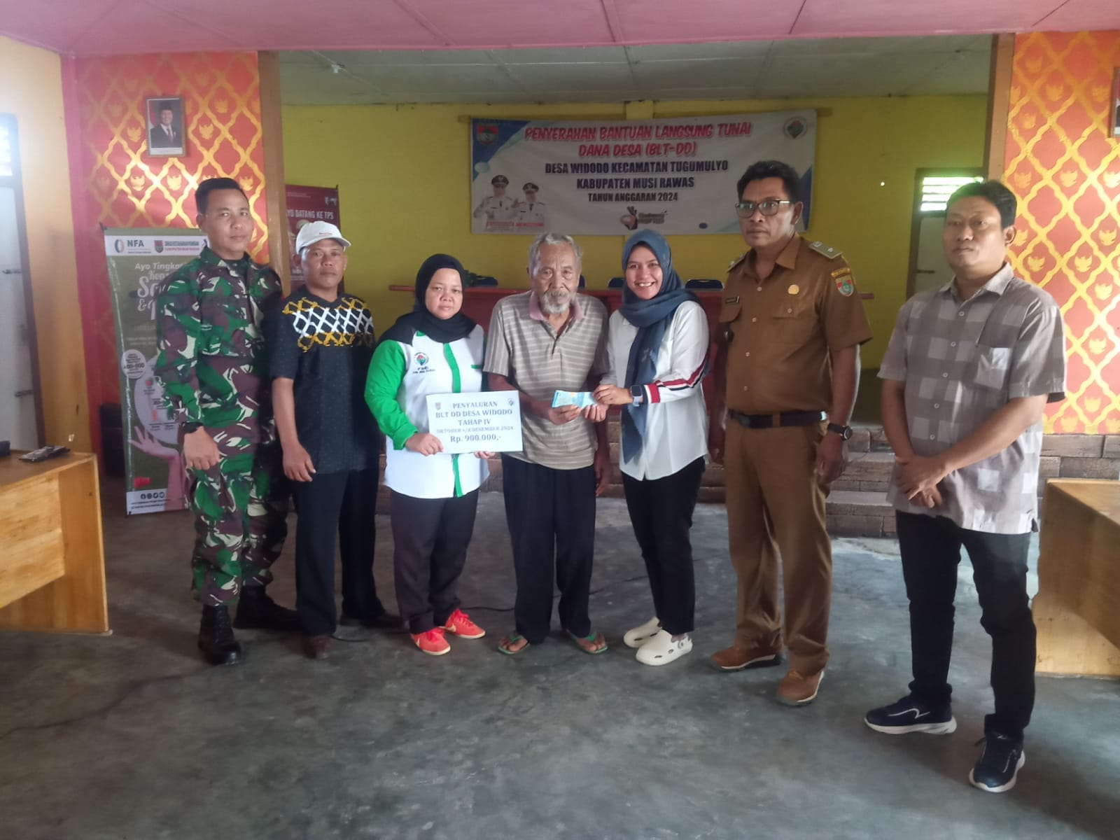 Tugumulyo, 11 Desember 2024 – Serda Joko, Babinsa Koramil 406-06/Tugumulyo, melaksanakan pendampingan dalam pembagian Bantuan Langsung Tunai (BLT) di Desa A Widodo. Sebanyak 53 orang masyarakat desa menerima bantuan tersebut. Kegiatan ini berlangsung di Kecamatan Tugumulyo, Kabupaten Musi Rawas, dan dihadiri oleh berbagai pihak terkait untuk memastikan pelaksanaan yang tertib dan lancar.