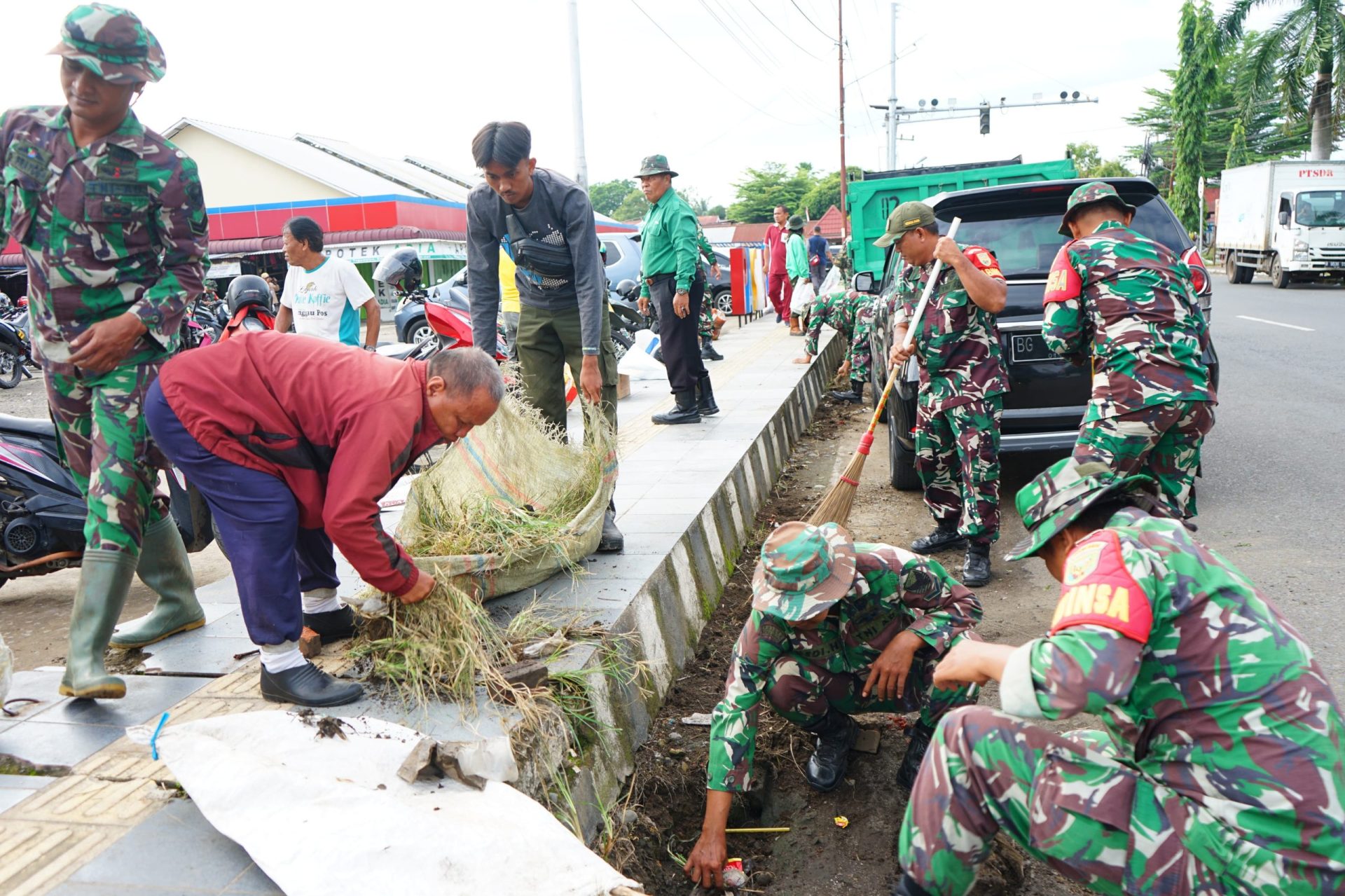 Lensa Garuda- Musi Rawas, Personil Koramil jajaran Kodim 0406/Lubuk Linggau di bawah Komando Pabung Musi Rawas Kapten Czi Epi Sugiharto bersinergi dengan anggota Polsek Tugumulyo dan Kecamatan serta warga menyerbu pasar B Srikaton melaksanakan karya bakti pembersihan yang berlokasi di Desa B Srikaton Kecamatan Tugumulyo Kabupaten Musi Rawas, Jumat (13/12/2024).