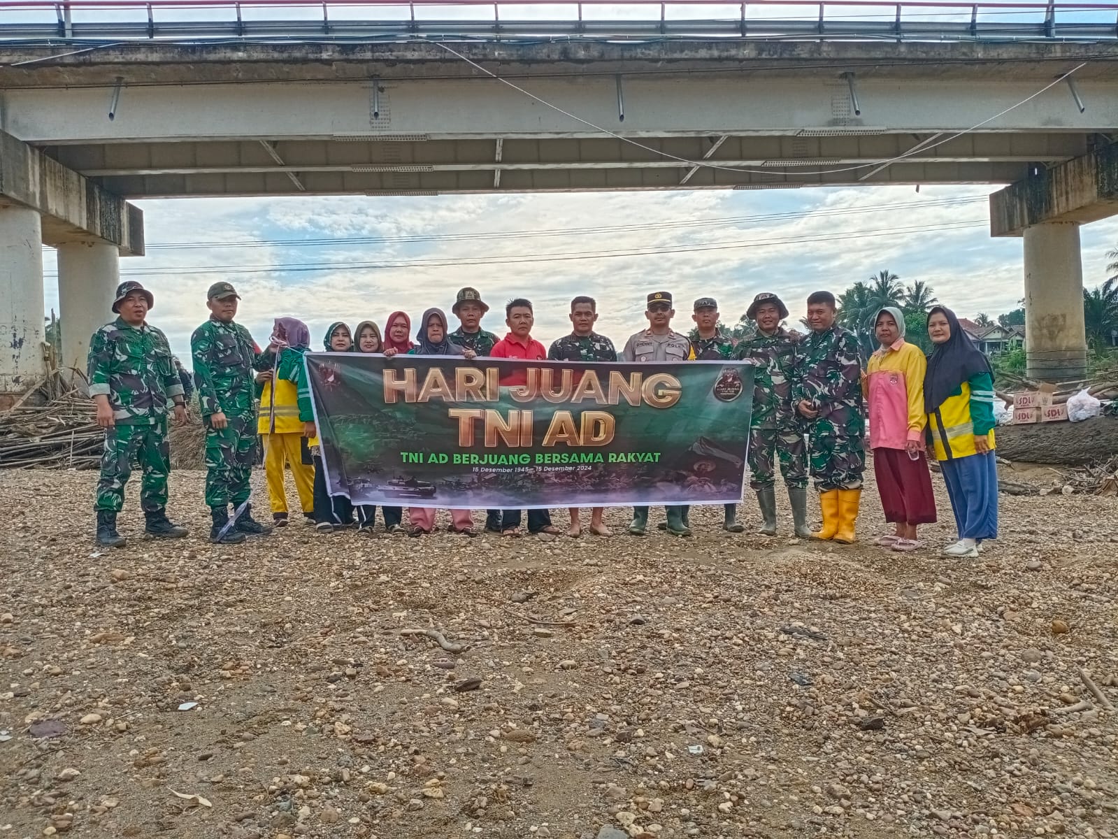 Danramil Kapten Inf Abbas Syarif Hidayat menyampaikan bahwa kegiatan pembersihan aliran sungai ini dalam rangka memperingati hari juang TNI AD ke-79. Selain itu bertujuan untuk mencegah terjadinya banjir yang diakibatkan oleh sampah yang menumpuk di aliran sungai sekaligus menjaga jembatan agar tidak terputus akibat terjangan sampah.