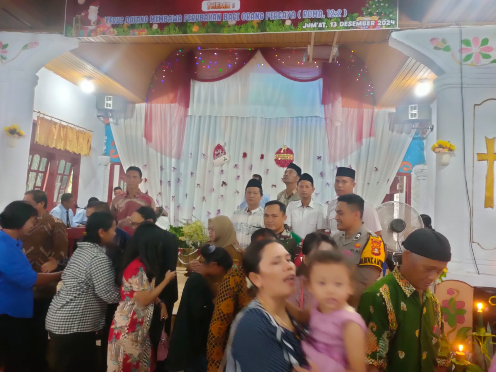 Lensa Garuda- Musi Rawas, Dalam rangka monitoring dan pengamanan kegiatan ibadah, Babinsa Koramil Serda Hedi Marta Lores hadir dalam acara Kebaktian Natal yang diselenggarakan oleh Jemaat Gereja Kristen Injili di Indonesia (GEKISIA) dengan tema “Yesus Datang Membawa Keberkahan Bagi Umat”. Acara ini dilaksanakan pada hari Jumat 13 Desember 2024 bertempat di Gereja GEKISIA Jemaat Darma Sakti, Desa Darma Sakti, Kecamatan Tuah Negeri, Kabupaten Musi Rawas. Sabtu (14/12/2024).