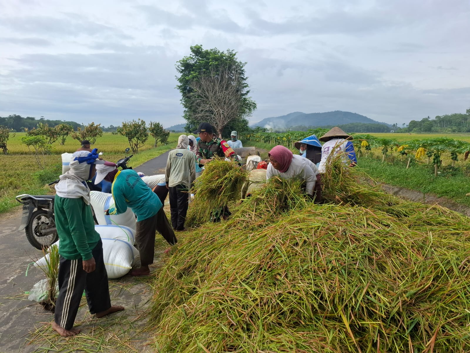 Sertu Nusdar turut hadir di tengah masyarakat yang sedang melaksanakan panen padi di areal persawahan desa tersebut. Kehadiran Babinsa tidak hanya untuk memberikan semangat kepada para petani, tetapi juga sebagai bentuk dukungan terhadap ketahanan pangan di wilayah binaan.