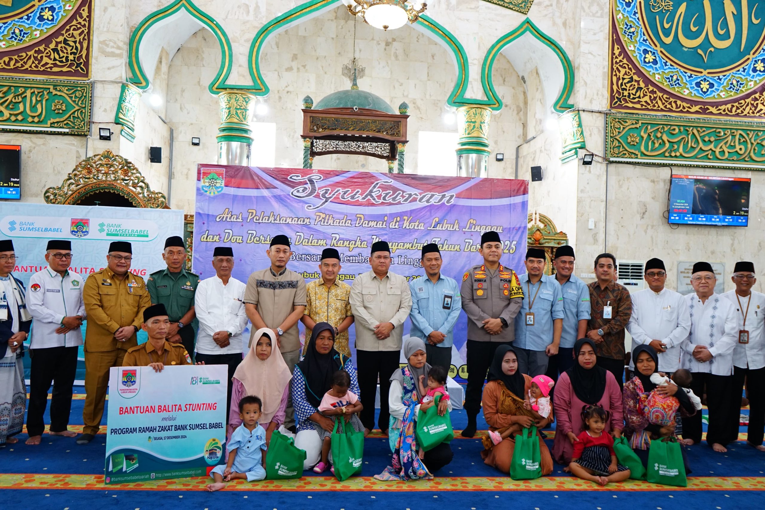 Acara diawali dengan pembacaan Ayat suci Alquran, Pemberian bantuan secara simbolis kepada orang tua anak berstatus stunting, sambutan dari Kepala Bank Sumsel Syariah, Sambutan Pj Walikota Lubuk Linggau Khoimudin, dan diakhiri dengan ceramah dan doa yang dibawakan oleh H Inayatullah.