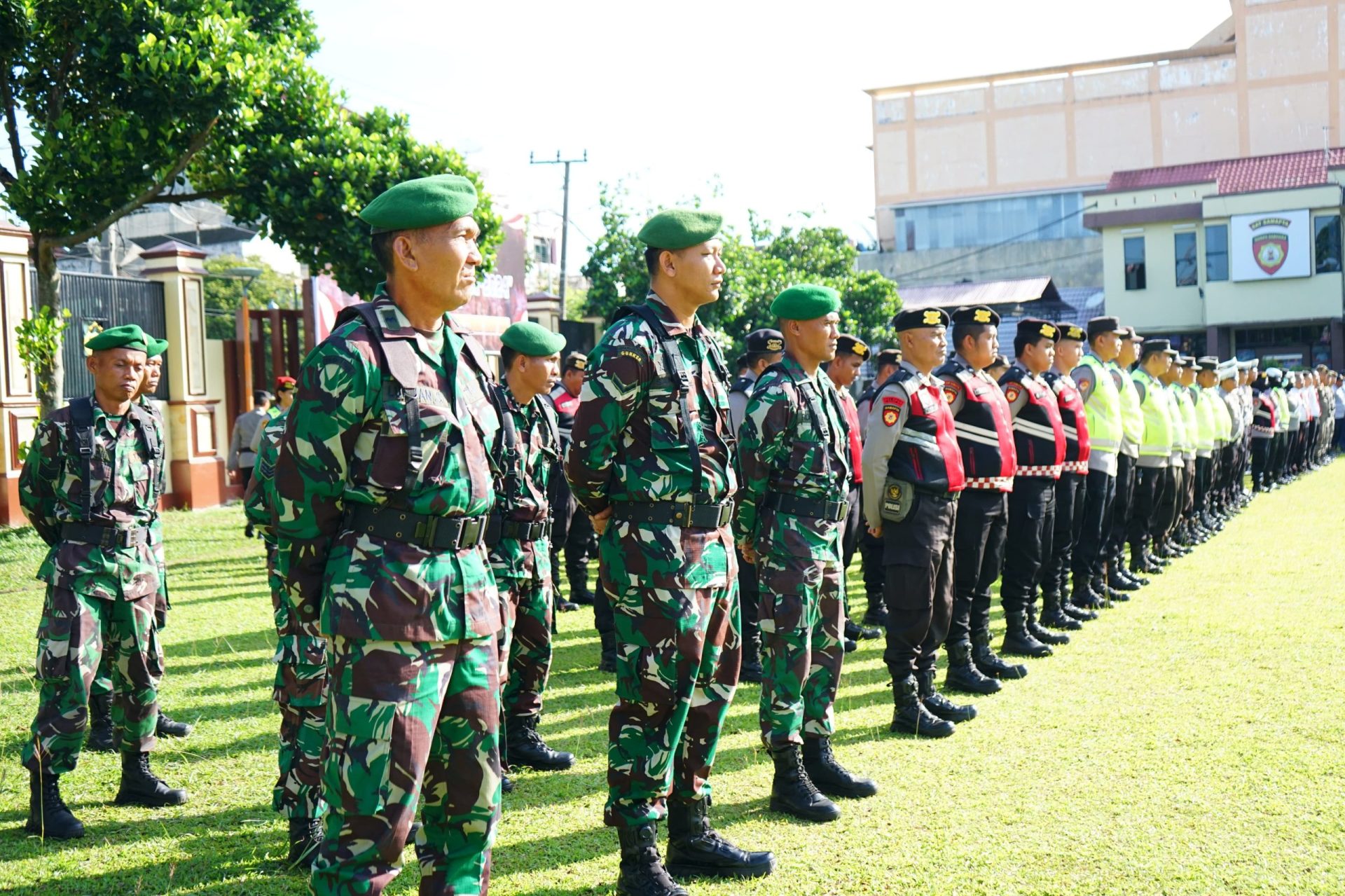 Lensa Garuda- Lubuk Linggau Komando Distrik Militer(KODIM) 0406/Lubuk Linggau, Kepala Staf Kodim Mayor Inf Khairul Ansori beserta anggota menghadiri apel gelar pasukan “Operasi Lilin 2024” dalam rangka pengamanan Natal Tahun 2024 dan tahun Baru 2025 yang digelar di Mapolres Kota Lubuk Linggau. Jumat (20/12/2024).