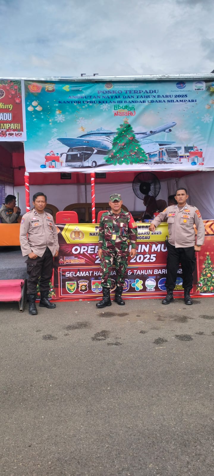 Lensa Garuda- Lubuk Linggau, Dalam rangka memastikan kelancaran dan keamanan perjalanan para penumpang selama libur Natal dan Tahun Baru (Nataru), Babinsa Koramil 406-10/Lubuk Linggau Timur bersama anggota kepolisian melaksanakan pengamanan di Pos Nataru Bandara Silampari Kota Lubuk Linggau. Di Air Kuti, Kec. Lubuk Linggau Timur I, Kota Lubuk Linggau, Minggu (22/12/2024).