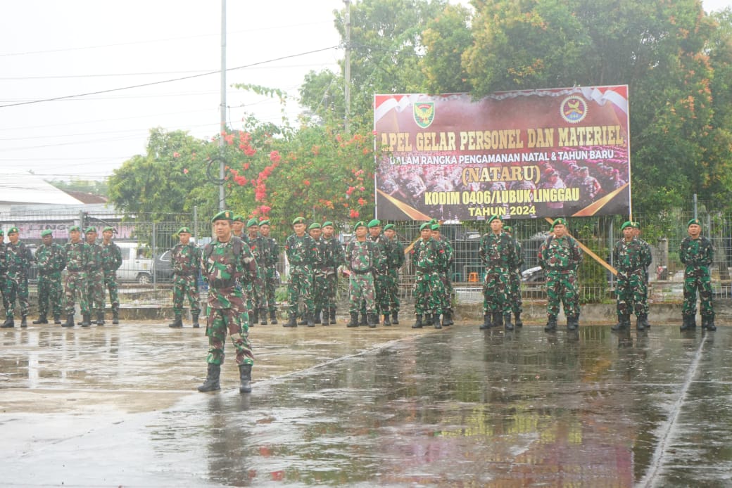 Apel Gelar Personel dan Materiel Dalam Rangka Pengamanan Natal Tahun 2024 dan Tahun Baru 2025 Kodim 0406 Lubuk Linggau