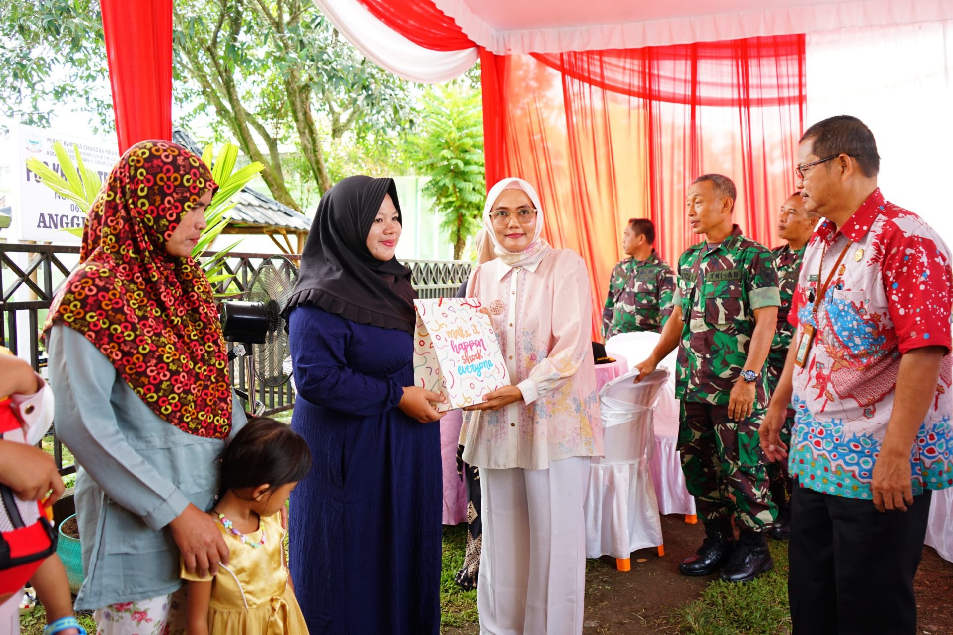 Kegiatan ini dihadiri oleh Kepala Staf Kodim Mayor Inf Khairul Ansori, Camat Ibu Selvy, Lurah Tanjung Indah Mustaredi, Kapolsek diwakili Kanit Intel Aipda Dedi Gustianto SH, Pasiter Kapten Inf Jati Priyono,Pasi Pers Kapten Inf M Assad, Danramil 406-09/Terawas Lettu Inf Abdi Nusa, Persit Bidang Sosial Ny. Epi Sugiharto dan ibu-ibu Persit, serta orang tua balita dan ibu hamil yang hadir.