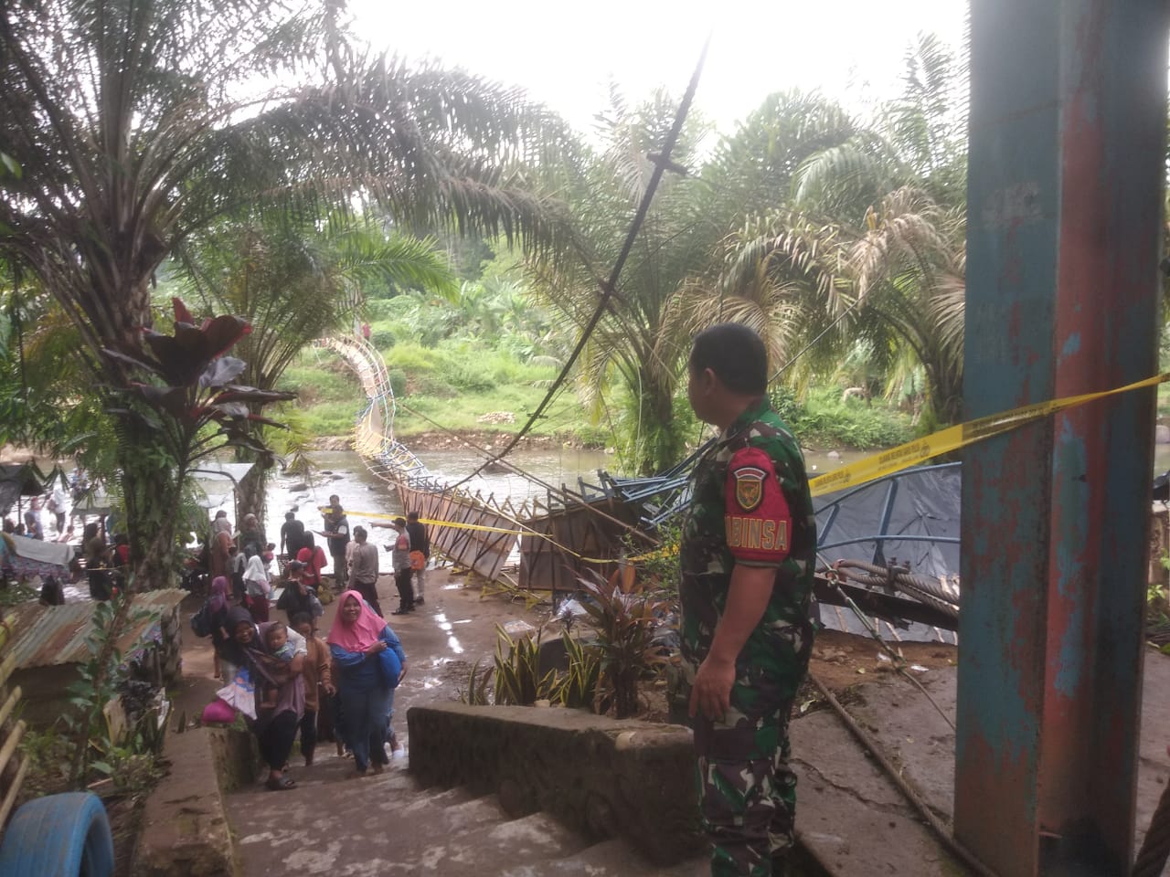 Adapun tindakan sertu Ari sandi selaku Babinsa berkoordinasi dengan pihak kepolisian dan menutup sementara jembatan dan melarang masyarakat untuk berada di kiri kanan jembatan terutama di bawah jembatan dan di arah bawah arus jembatan. Di takutkan ada matrial yg berbahaya yg dapat melukai masyarakat.