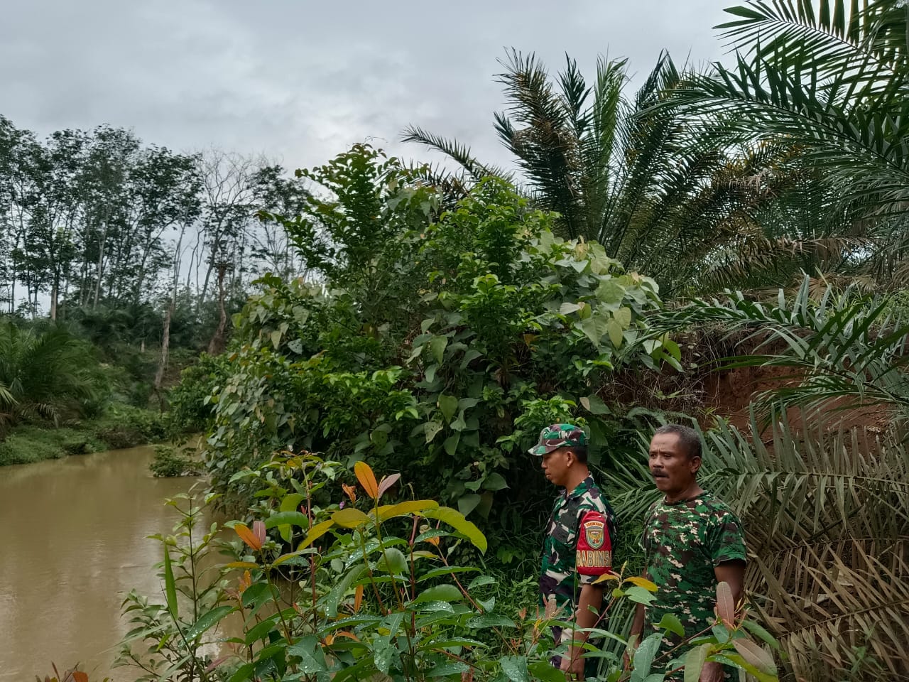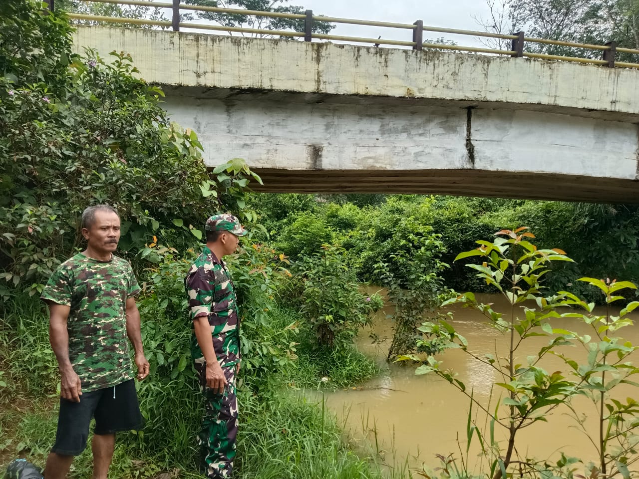 Babinsa Koramil 406-07/Jayaloka Lakukan Pengecekan Sungai Temelat Antisipasi Wilayah Rawan Banjir