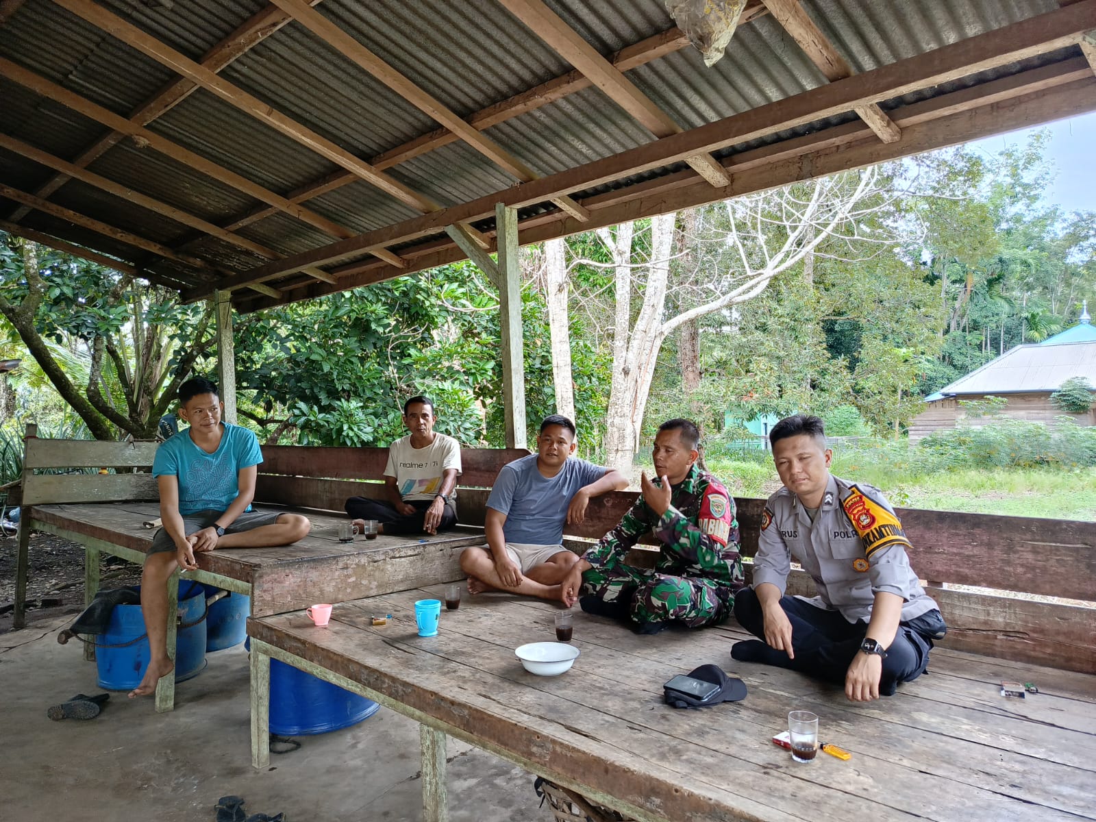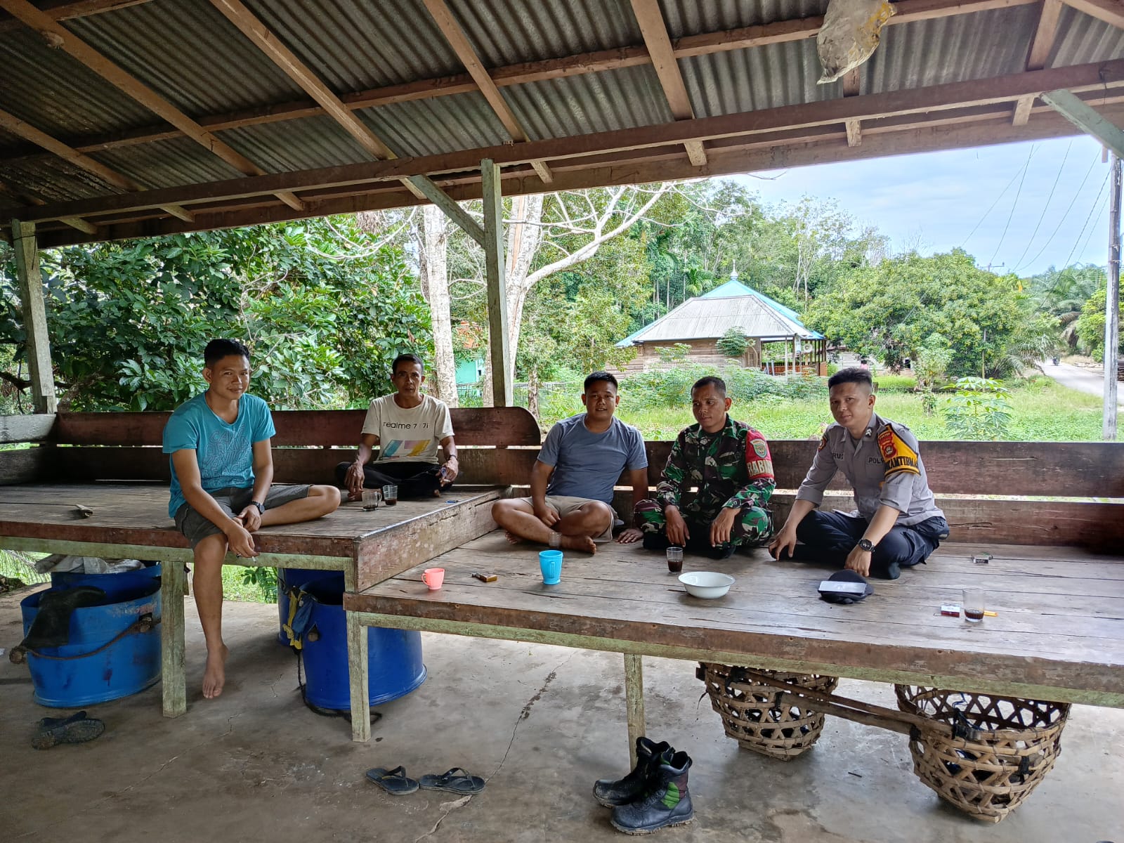 Kegiatan yang berlangsung di sawung peristirahatan yang berada dibelakang rumah saudara Bastiar ini penuh keakraban. Ngobrol bareng ini dilakukan oleh Babinsa dan Bhabinkamtibmas saat mereka melaksanakan patroli dan monitoring wilayah binaannya.