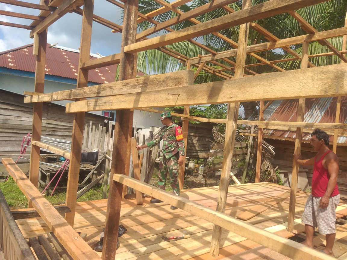 Babinsa Koramil 406-04/Muara Lakitan Bantu Warga Bangun Tempat Usaha Sederhana