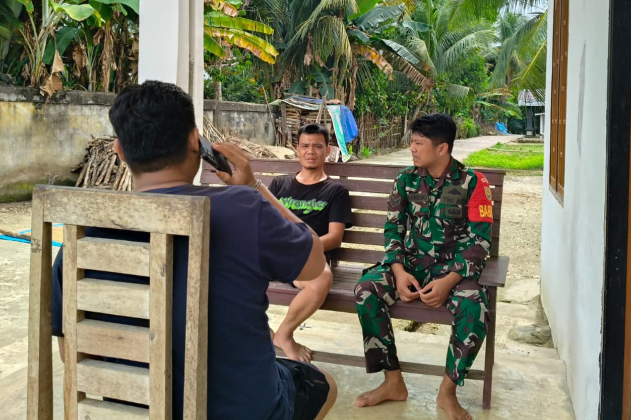 Babinsa Koramil 406-01/Rawas Ulu, Sertu Dedi Handiki, melaksanakan kegiatan komunikasi sosial (komsos) di Desa Sungai Baung, Kecamatan Rawas Ulu, Kabupaten Musi Rawas Utara.