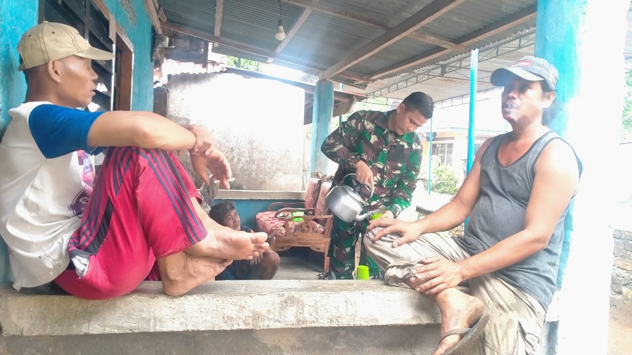Babinsa Koramil 406-03/Rupit Serda Febri Yanto Gotong Royong Bersama Warga di Desa Embacang Lama