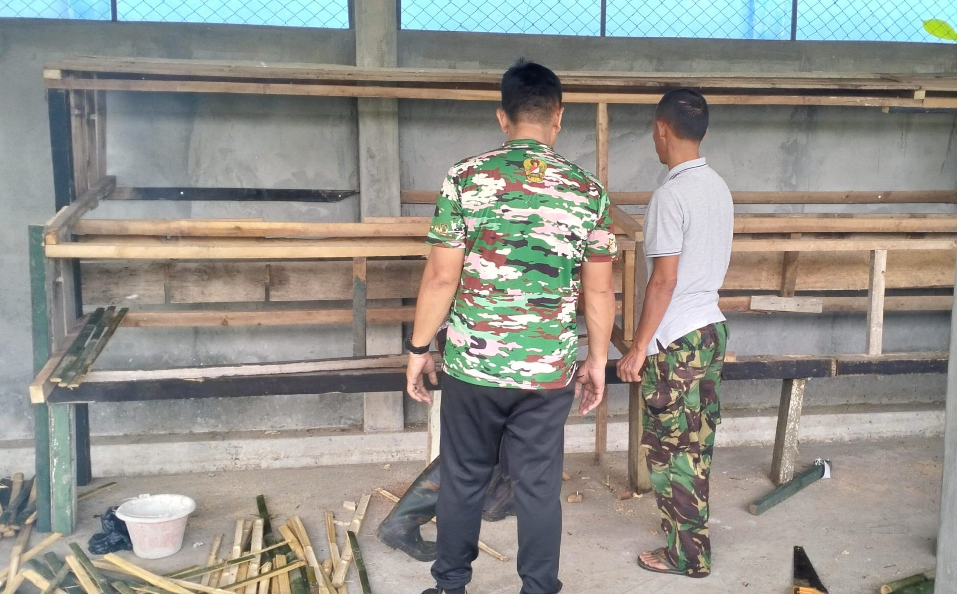 Lensa Garuda- Lubuk Linggau, Dalam rangka mendukung program ketahanan pangan, Babinsa Koramil 406-10/Lubuk Linggau Timur dipimpin Serma Suwartono melaksanakan kegiatan pembuatan kandang ayam petelur di lingkungan Koramil 406-10/Lubuk Linggau Timur. Kegiatan ini bertujuan untuk meningkatkan kemandirian masyarakat dalam penyediaan sumber pangan yang bergizi dan terjangkau. Rabu (22/01/2025).