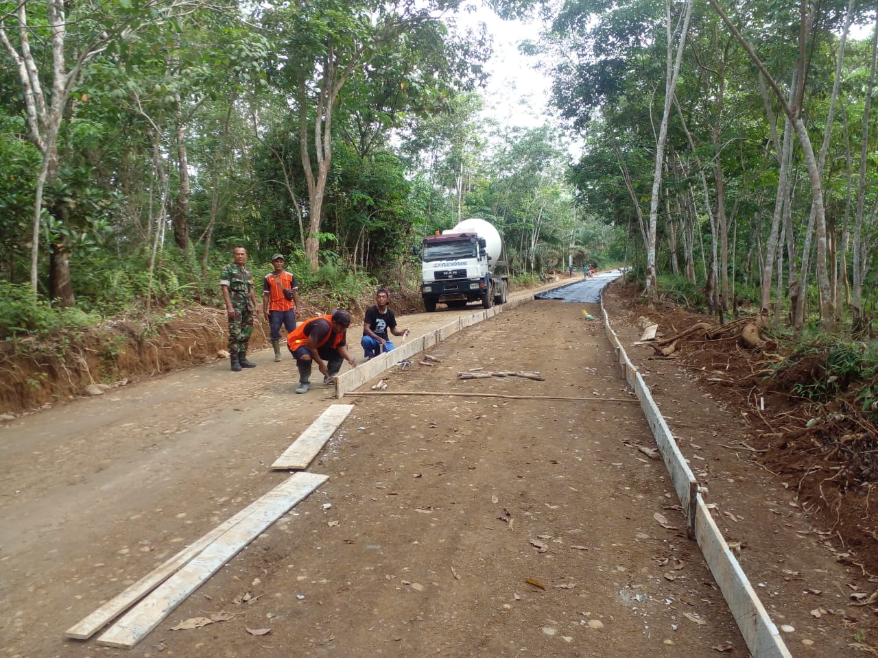 Babinsa Koramil 406-08/Lubuk Linggau Monitoring Pengecoran Jalan di Wilayah Binaan