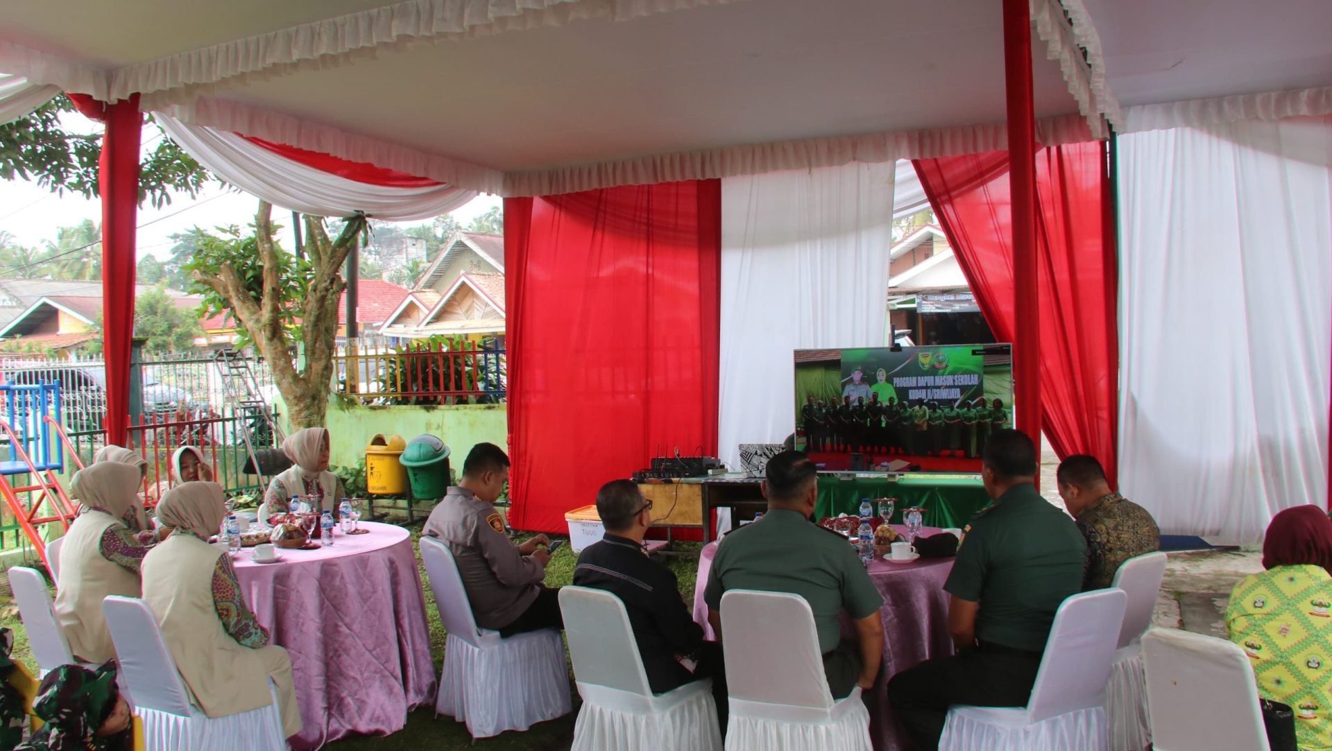 Acara dilanjutkan dengan Video Conference (Vidcon), yang diisi dengan sambutan dari Pangdam II/Sriwijaya, Mayjen TNI M. Naudi Nurdika. Dalam sambutannya, beliau menekankan pentingnya pelaksanaan Program Dapur Masuk Sekolah sebagai langkah strategis untuk membangun generasi muda yang sehat dan cerdas.