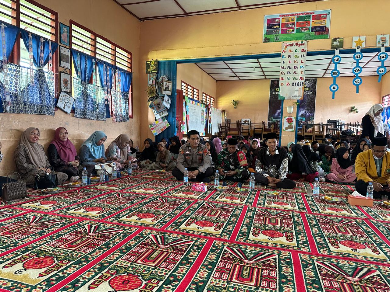 Bintara Pembina Desa (Babinsa) Koramil 406-09/Terawas, Sertu Eko Epriyanto, menghadiri kegiatan peringatan Isra Mi’raj Nabi Muhammad SAW 1446 H/2025 M di Sekolah Dasar Tabarenah, Kecamatan Selangit, Kabupaten Musi Rawas.
