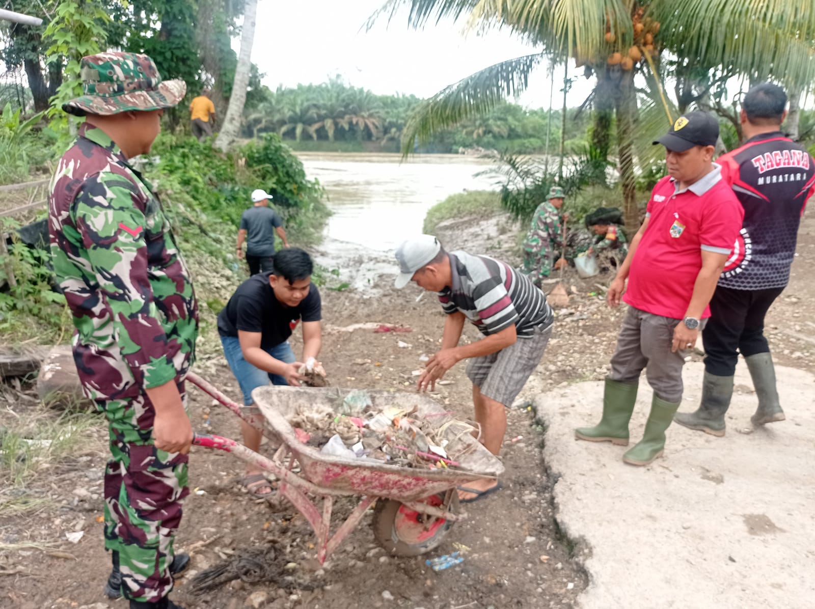 Dalam upaya menjaga kelestarian lingkungan dan mencegah terjadinya banjir, Danramil 406-03/Rupit, Kapten Inf Abbas Syarif, bersama anggota Koramil 406-03/Rupit bergotong royong dengan Pemerintah Desa (Pemdes) Karang Anyar melakukan pembersihan aliran Sungai Rawas yang melintasi Desa Karang Anyar, Kecamatan Rupit, Kabupaten Musi Rawas Utara (Muratara).