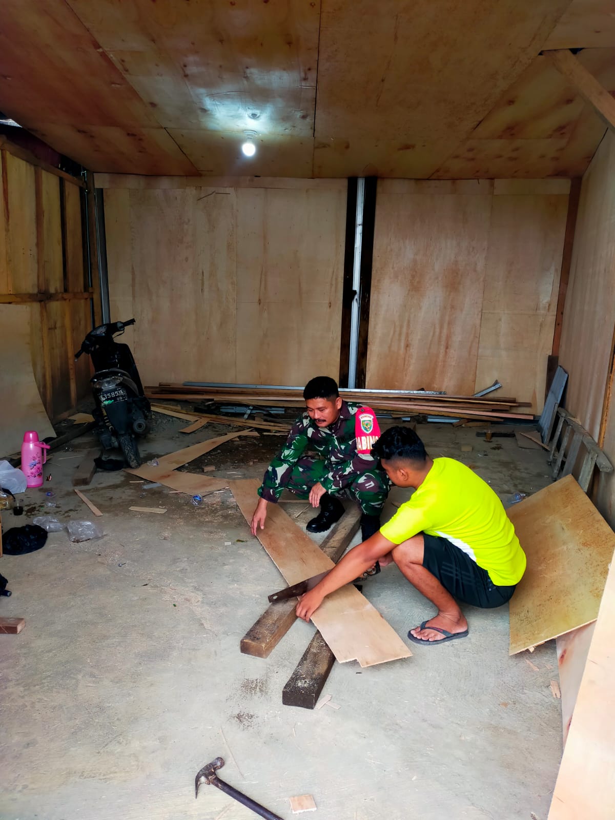 Lensa Garuda- Musi Rawas, Dalam rangka mempererat tali silaturahmi dan mendukung kegiatan warga, Babinsa Koramil 406-05/Muara Kelingi Serda Atuloo Waruwu turut berpartisipasi dalam proses pembangunan warung kopi milik Bapak Sulistino, warga Desa Jaya Bhakti, Kecamatan Tuah Negeri, Kabupaten Musi Rawas. Senin (03/02/2025).