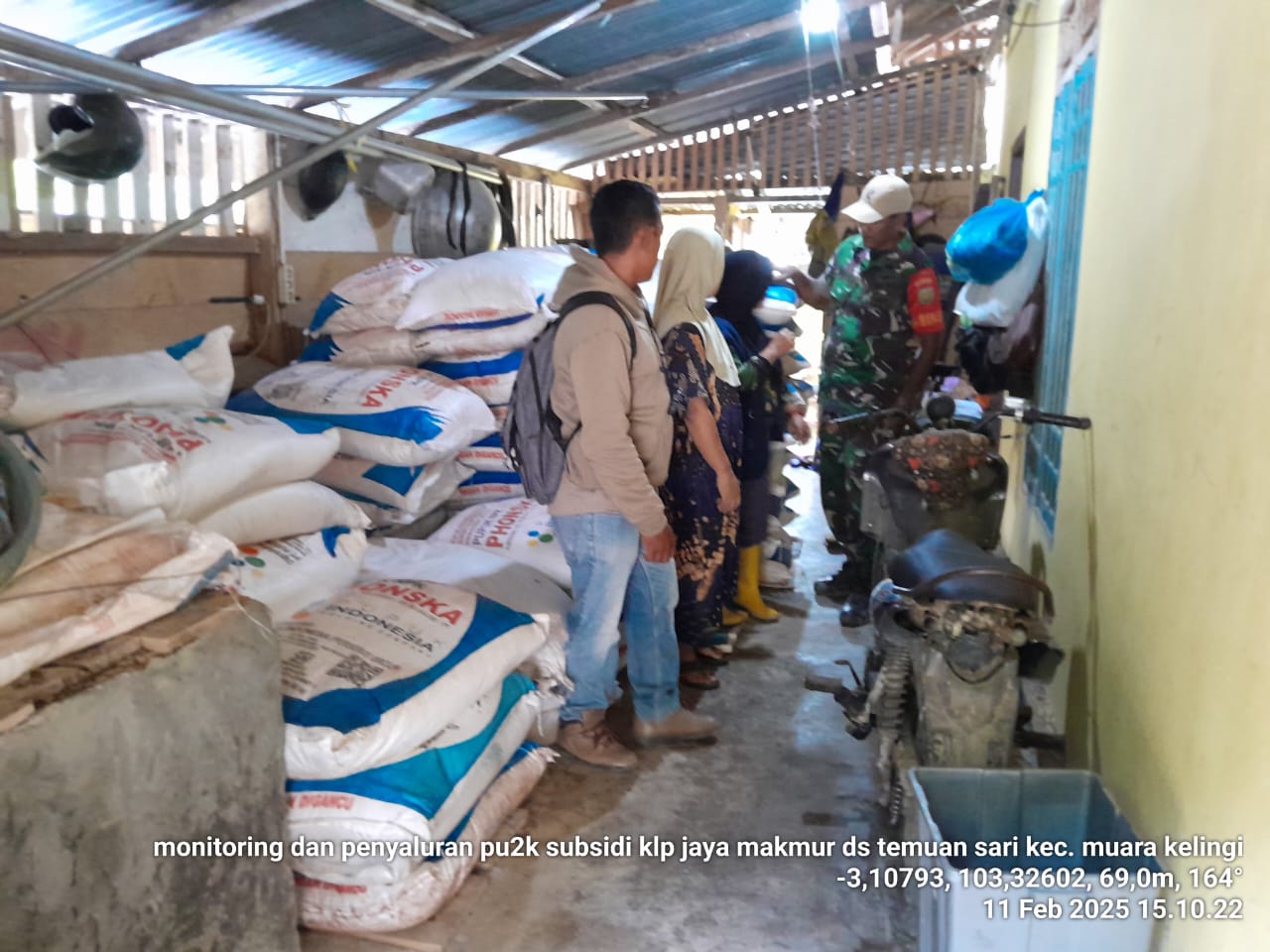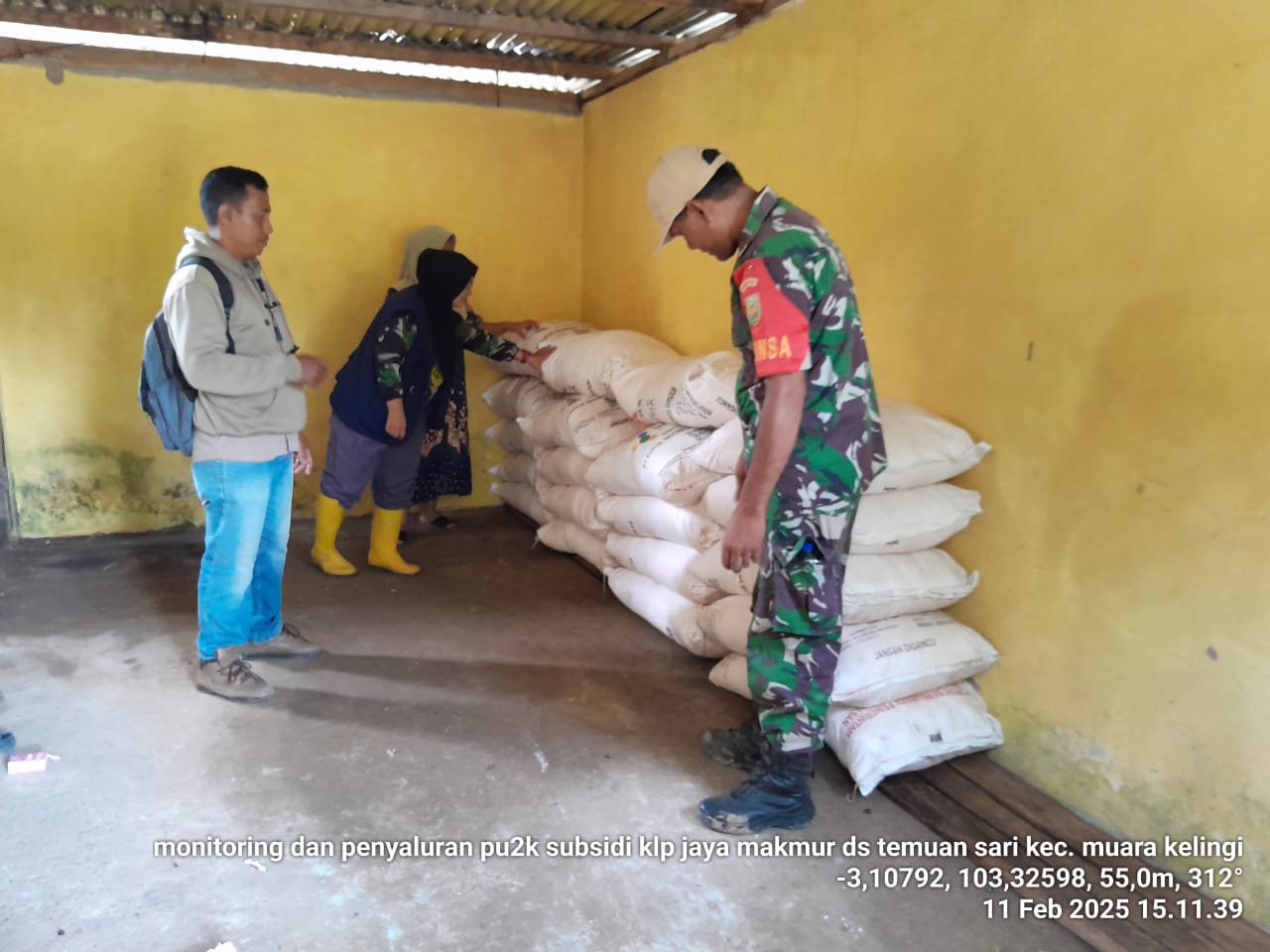 Lensa Garuda- Musi Rawas, Dalam rangka mendukung program ketahanan pangan nasional, Sertu Aman Syah, anggota Babinsa Koramil 406-05/Muara Kelingi bersama dengan Kjf Bapak Isnadi, S.Pd., dan PPL Ibu Lina Marleni, S.Pt, serta Ibu Lilik Latifah, S.Pt, 11 Februari 2025 melaksanakan kegiatan monitoring penyaluran pupuk subsidi di Gapoktan Desa Temuan Sari, Kecamatan Muara Kelingi, Kabupaten Musi Rawas, Rabu (12/02/2025).