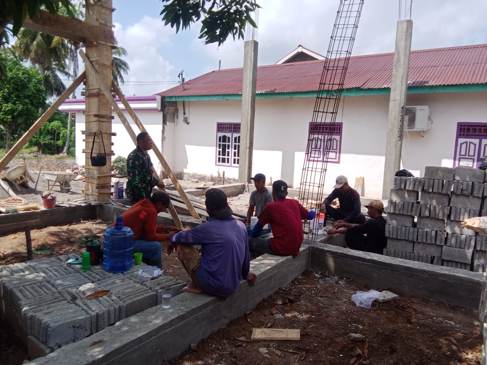 Lensa Garuda- Babinsa Koramil 406-05/Muara Kelingi, Serda Rustan Adi Candra, mendatangi warga yang sedang beristirahat di lokasi pembangunan rumah, di Desa Air Beliti Kecamatan Tuah Negeri, Kabupaten Musi Rawas. Dengan tujuan untuk melaksanakan kegiatan komunikasi sosial. Kamis (13/02/2025).