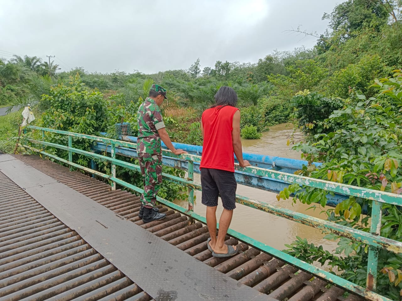 Babinsa Koramil 406-07/Jayaloka dan Mitra Karib Aktif Pantau Aliran Sungai untuk Cegah Bencana