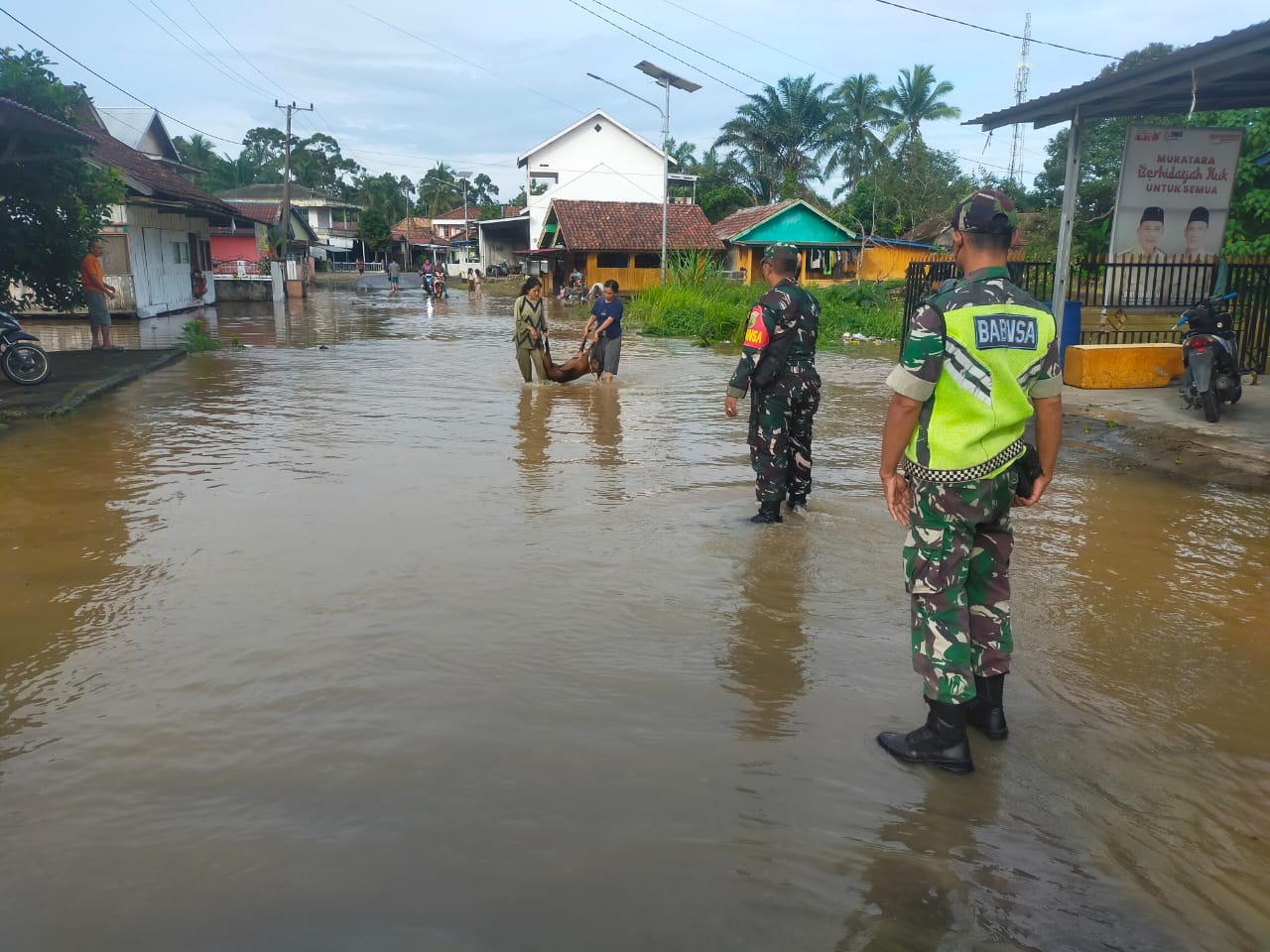 Menanggapi situasi ini, Babinsa Koramil 406-02/Rawas Ilir segera turun ke lokasi untuk melakukan pemantauan dan memastikan kondisi warga terdampak. Kehadiran Babinsa bertujuan untuk mengidentifikasi dampak banjir, membantu warga yang membutuhkan, serta berkoordinasi dengan pemerintah setempat dalam upaya penanggulangan.
