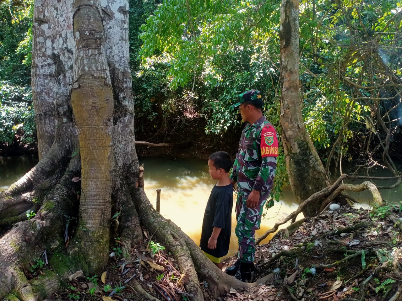 Babinsa Koramil 406-07/Jayaloka Himbau Anak-Anak di Desa Temelat Agar Tidak Bermain di Sungai Saat Musim Penghujan
