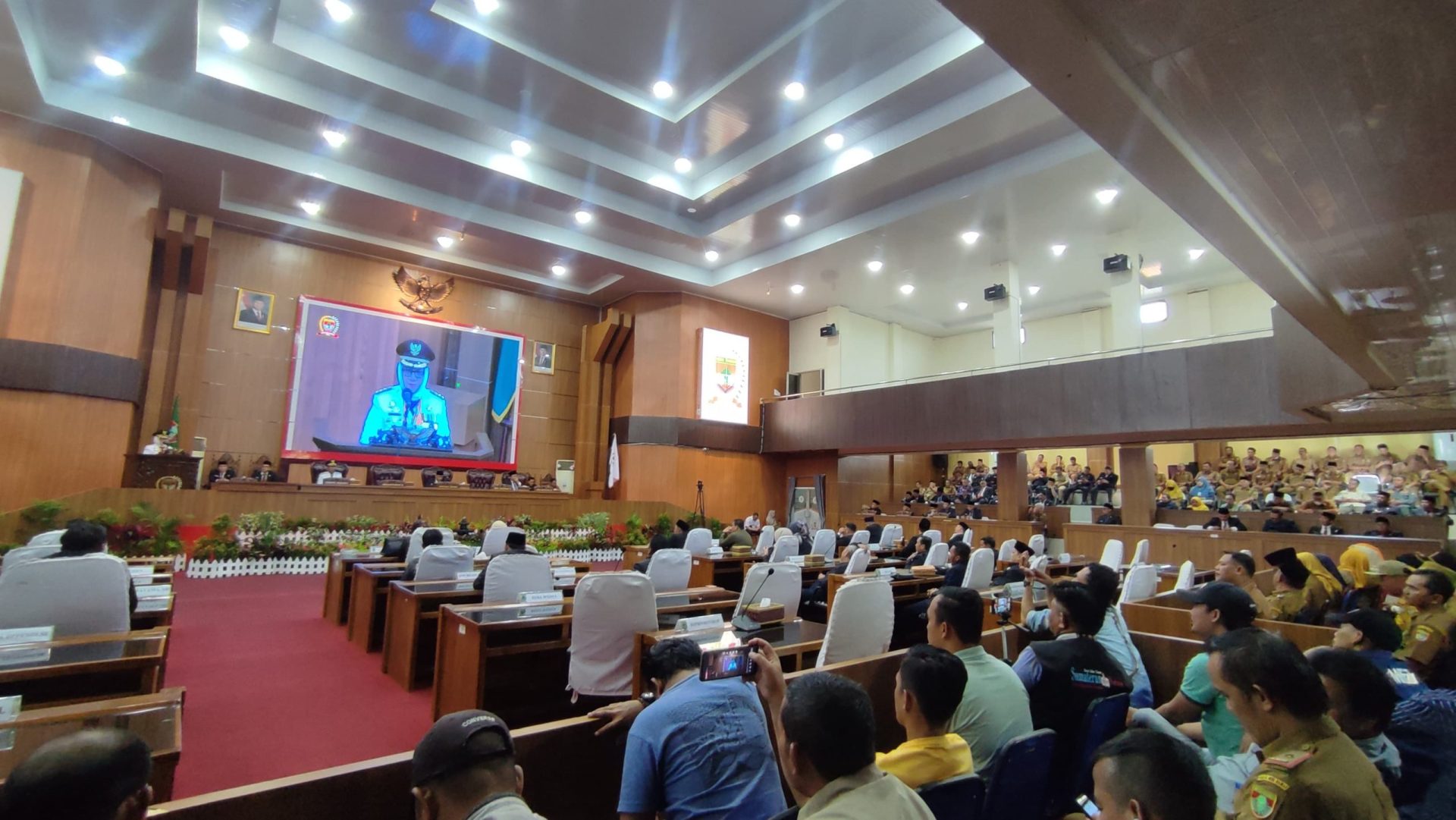 Komandan Kodim (Dandim) 0406/Lubuklinggau, Letkol Inf Arie Prasatyo Widyo Broto, S.E., M.M., menghadiri Rapat Paripurna DPRD Kabupaten Musi Rawas dalam rangka mendengarkan pidato Bupati dan Wakil Bupati terpilih, Hj. Ratna Machmud dan H. Suprayitno,
