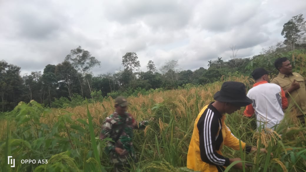 Babinsa Serda Suryanda Laksanakan Pendampingan Panen Padi Gogo di Lahan Anggota Kelompok Tani Cahaya Tani