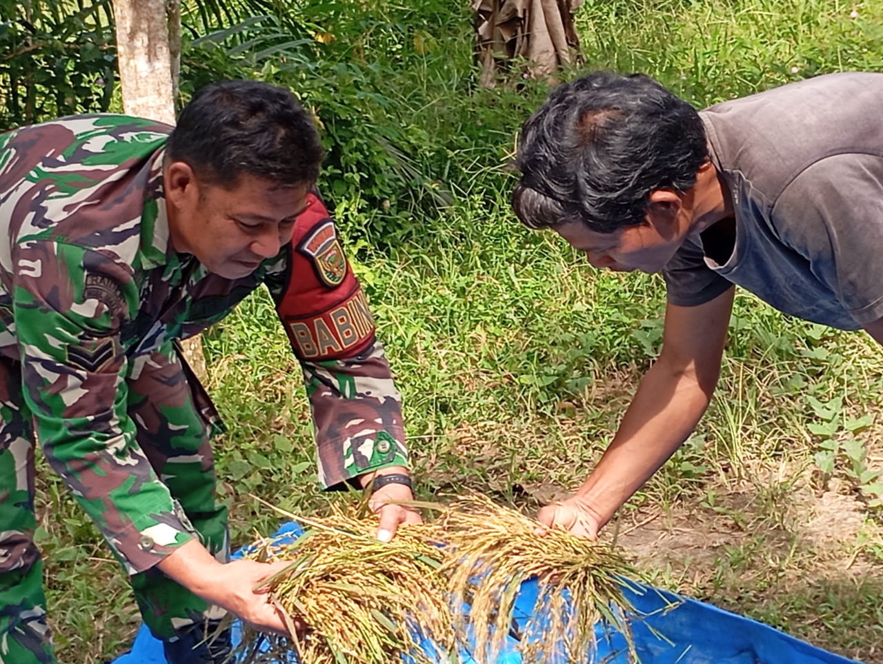Anggota Koramil 406-03/Rupit Dampingi Petani dalam Pemanenan Padi