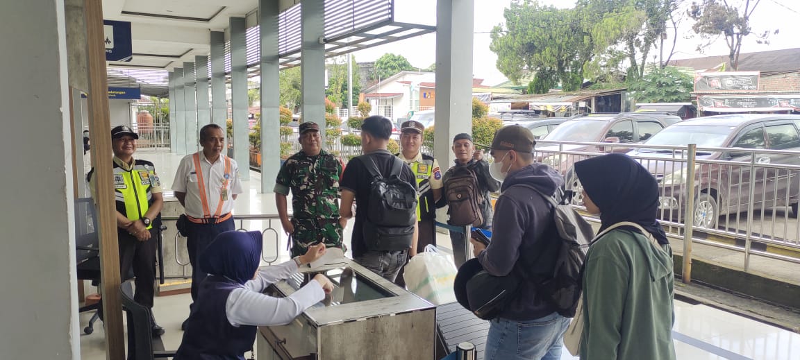 Babinsa Koramil 406-08/Lubuklinggau Monitoring Keberangkatan Kereta Api dan Lakukan Komsos di Stasiun Lubuklinggau