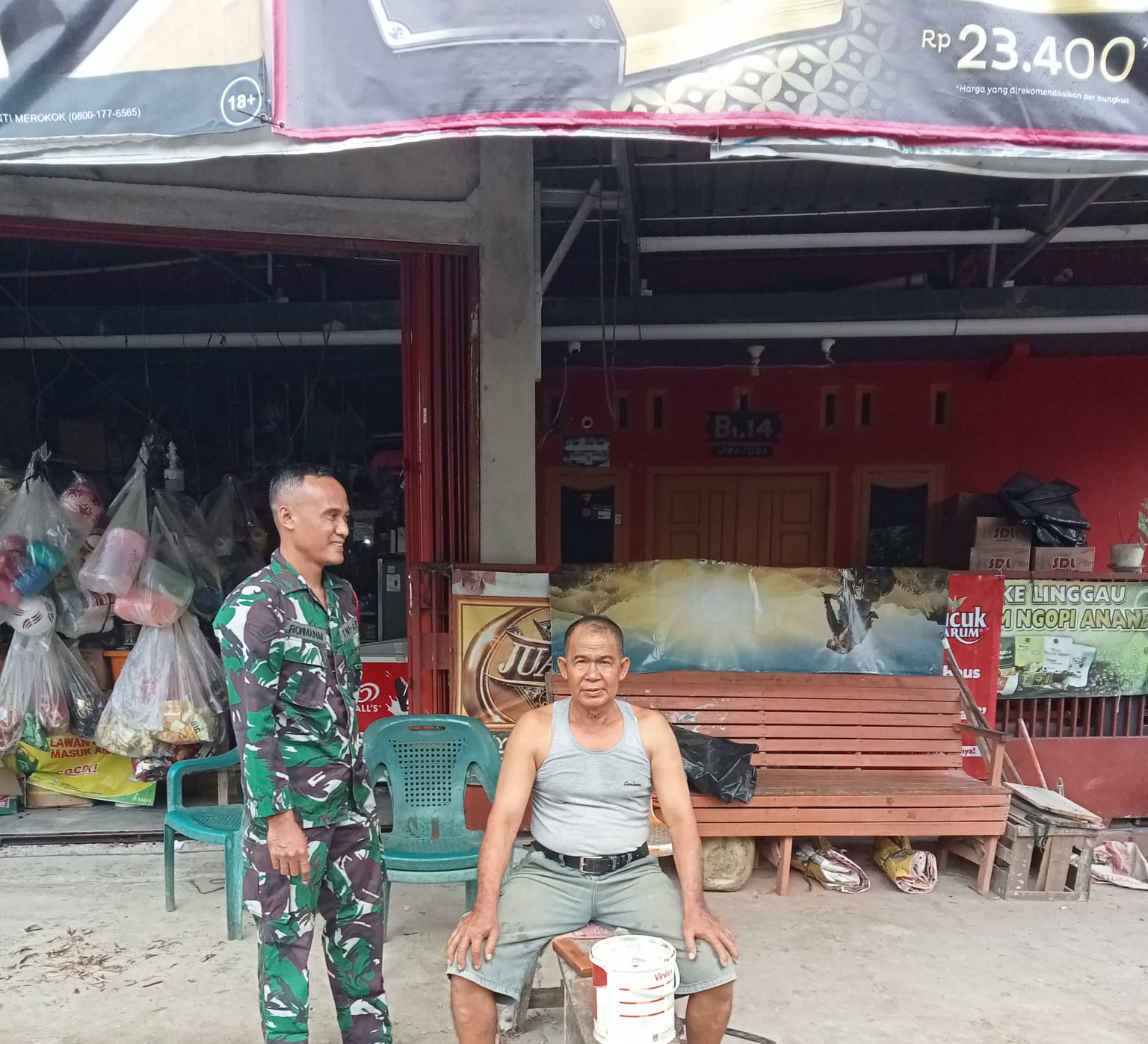 Lensa Garuda- Lubuk Linggau, Serda Rohman, anggota Babinsa dari Koramil 406-10/Lubuk Linggau Timur, melaksanakan kegiatan komunikasi sosial (Komsos) dengan pemilik toko manisan di wilayah Kelurahan Air Kuti, Kecamatan Lubuk Linggau Selatan I. Rabu (12/03/2025).