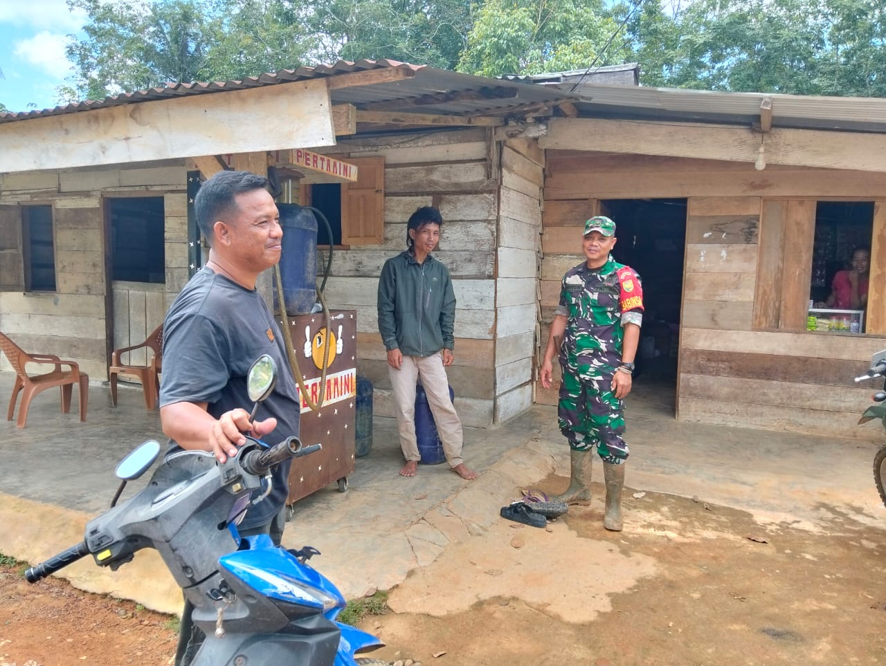 Muara Lakitan, 19 Maret 2025, Babinsa Koramil 406-04/Muara Lakitan, Sertu Wahyu Nugroho, melaksanakan kegiatan komunikasi sosial (Komsos) dengan masyarakat Desa SP 5 Tri Anggun Jaya, Kecamatan Muara Lakitan, Kabupaten Musi Rawas.