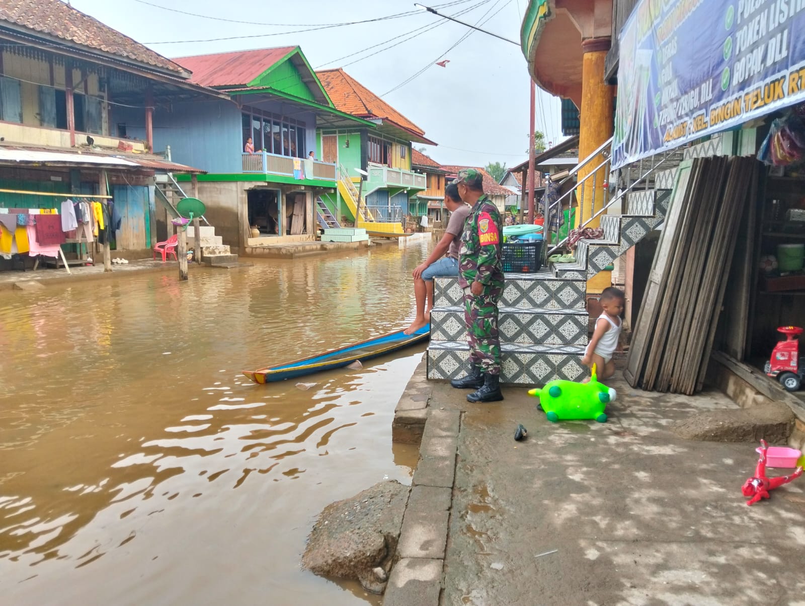 Babinsa Koramil 406-02/Rawas Ilir terus melakukan pemantauan intensif terhadap perkembangan situasi banjir musiman yang terjadi akibat luapan Sungai Rawas di wilayah Kabupaten Musi Rawas Utara.