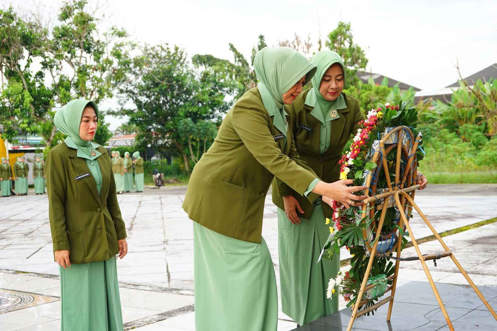 Kegiatan upacara ziarah ke taman makam pahlawan dan tabur bunga pada hari ini dipimpin oleh Ketua Persit Kartika Chandra Kirana Cabang XI Brigif 8 PD II Sriwijaya Ny. Dewi Enrico, dihadiri oleh Ketua Persit KCK Cabang XVII Dim 0406/Lubuk Linggau Ny Indah Arie Prasatyo, Wakil Ketua Persit Kartika Chandra Kirana Cabang XI Brigif 8 PD II Sriwijaya Ny Nina Rudijatmiko, di ikuti oleh Wakil Ketua Persit KCK Cabang XVII Dim 0406/Lubuk Linggau Ny Rina Febriana beserta pengurus dan anggota, serta pengurus dan anggota Persit KCK Cabang XI Brigif 8 PD II Sriwijaya, Persit Subdenpom, Persit Subdenzibang dan Persit Rumkitban 09.02.09 DKT.