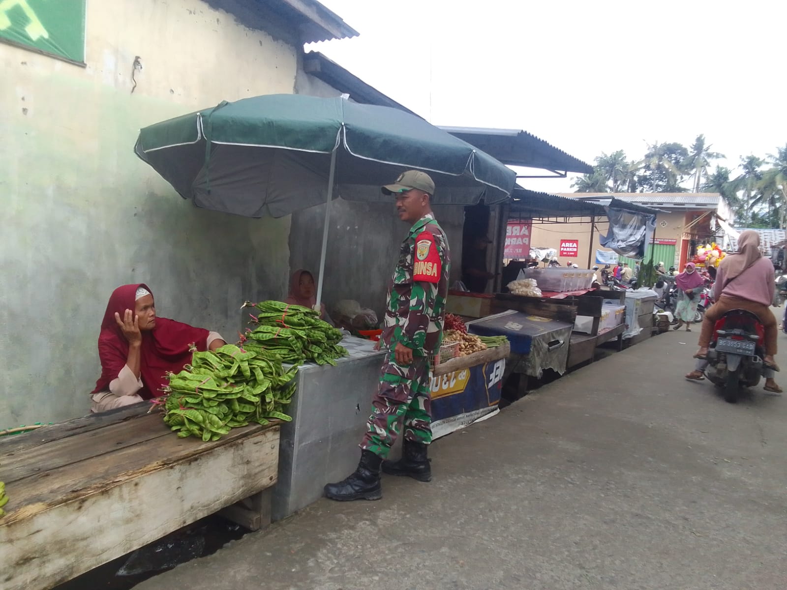 Sertu Rohmadi, selaku Babinsa di wilayah tersebut, mengunjungi para pedagang di berbagai kios pasar. Dalam kesempatan tersebut, Sertu Rohmadi menyampaikan pesan-pesan keamanan, serta mendengarkan langsung keluhan dan aspirasi dari para pedagang terkait situasi pasar. Selain itu, ia juga mengingatkan tentang protokol kesehatan yang harus diterapkan di pasar, seperti menjaga kebersihan lingkungan sekitar guna mencegah penyebaran penyakit.