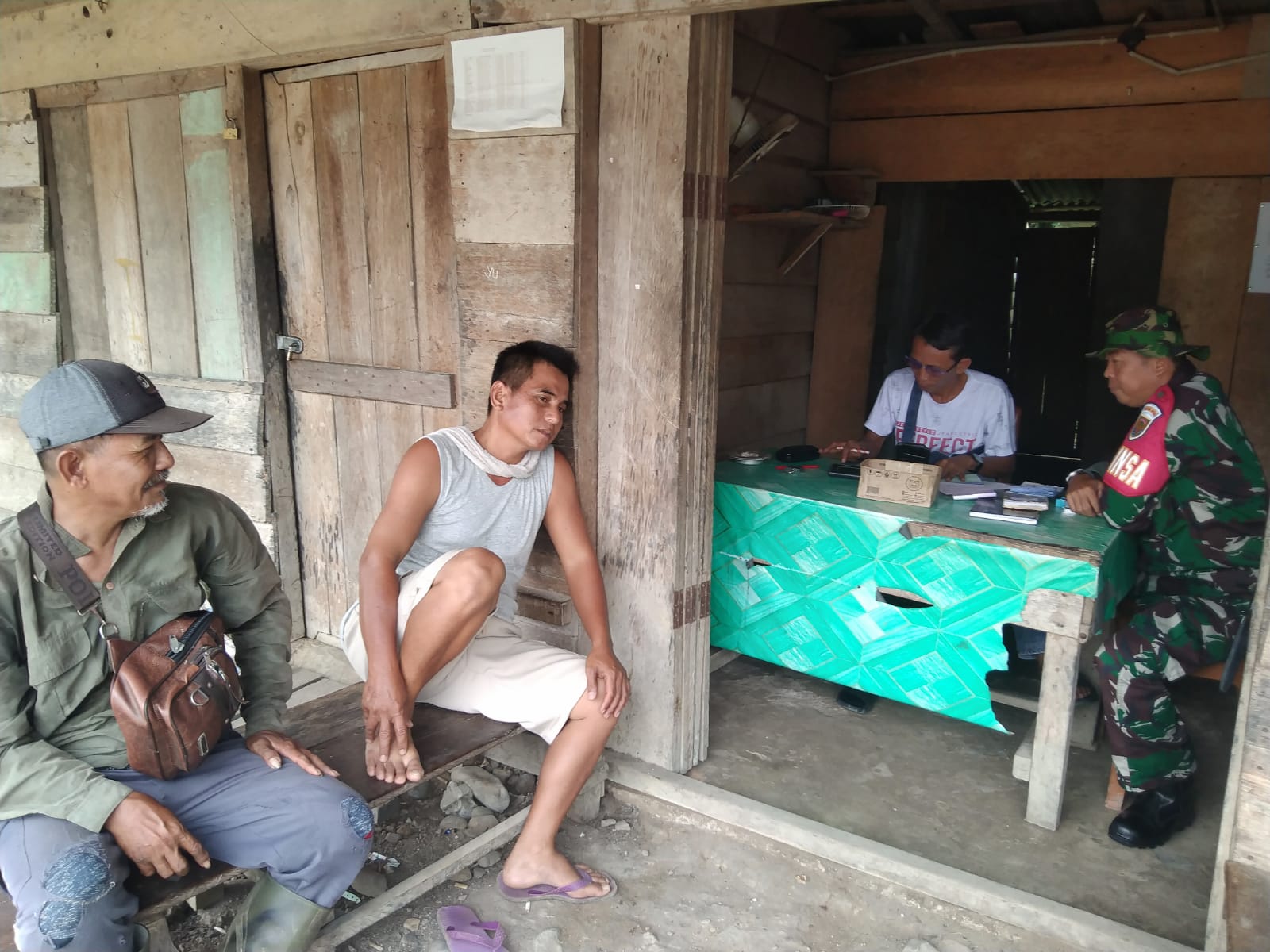 Babinsa Koramil 406-02/Rawas Ilir, Serda Joni Ismed, melaksanakan kegiatan Komunikasi Sosial (Komsos) dengan warga binaan di Desa Aringin, Kecamatan Karang Dapo, Kabupaten Musirawas Utara.