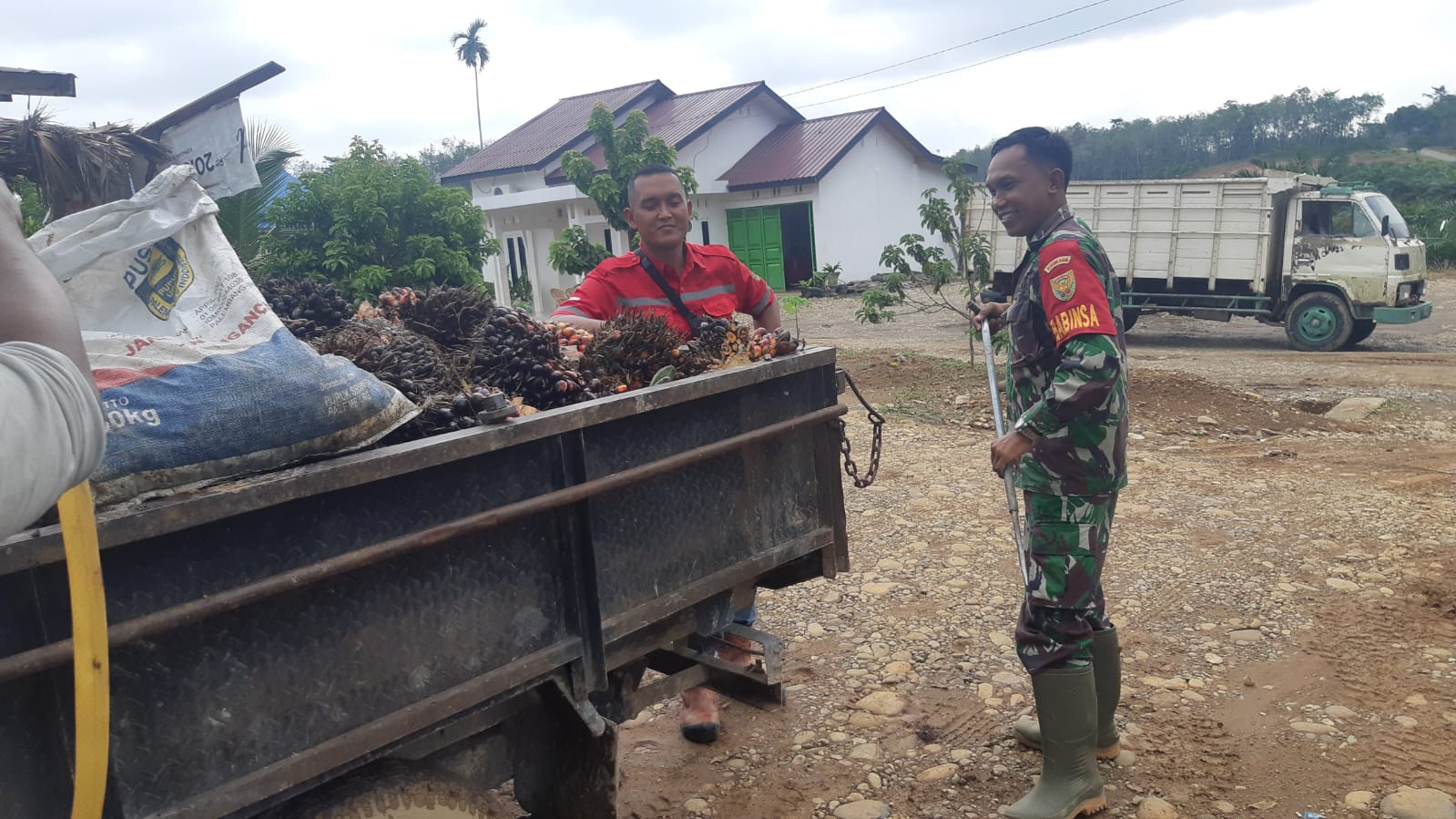 Dalam kesempatan tersebut, Babinsa Koptu Siswanto mengajak Pak Sapar berbincang-bincang mengenai perkembangan pertanian sawit di daerah tersebut serta mendiskusikan berbagai permasalahan yang dihadapi para petani, seperti masalah cuaca, teknik pemeliharaan tanaman, dan potensi peningkatan hasil panen. Selain itu.
