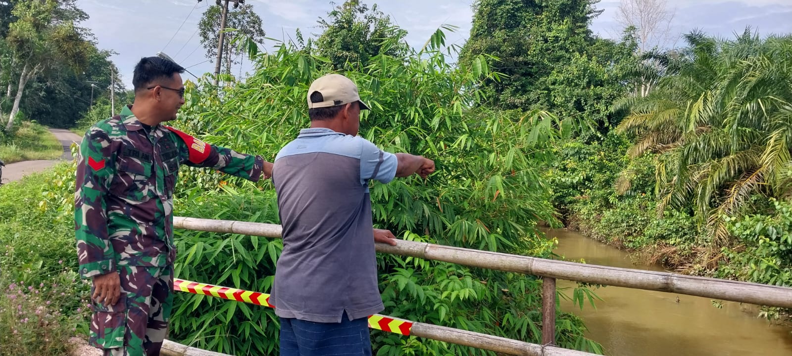 Babinsa Koramil 406-07/Jayaloka Aktif Lakukan Pengecekan Debit Air di Sungai Temelat