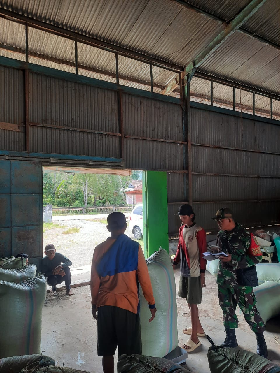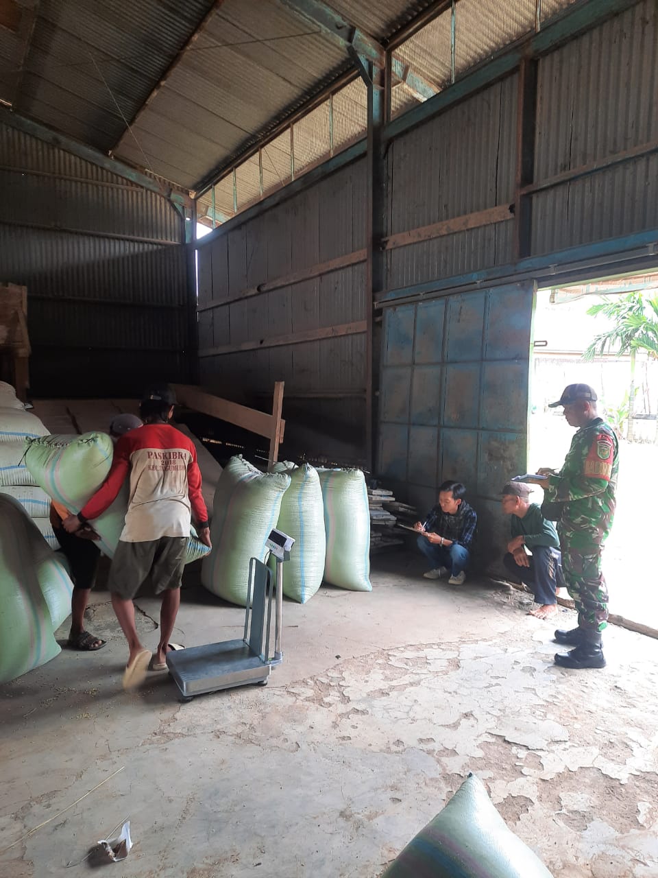 Tugumulyo, 24 Maret 2025, Babinsa Koramil 406-06/Tugumulyo melaksanakan kegiatan monitoring penyerapan gabah kering di Desa E Wonokerto, Kecamatan Tugumulyo, Kabupaten Musi Rawas, Senin (24/03/2025).