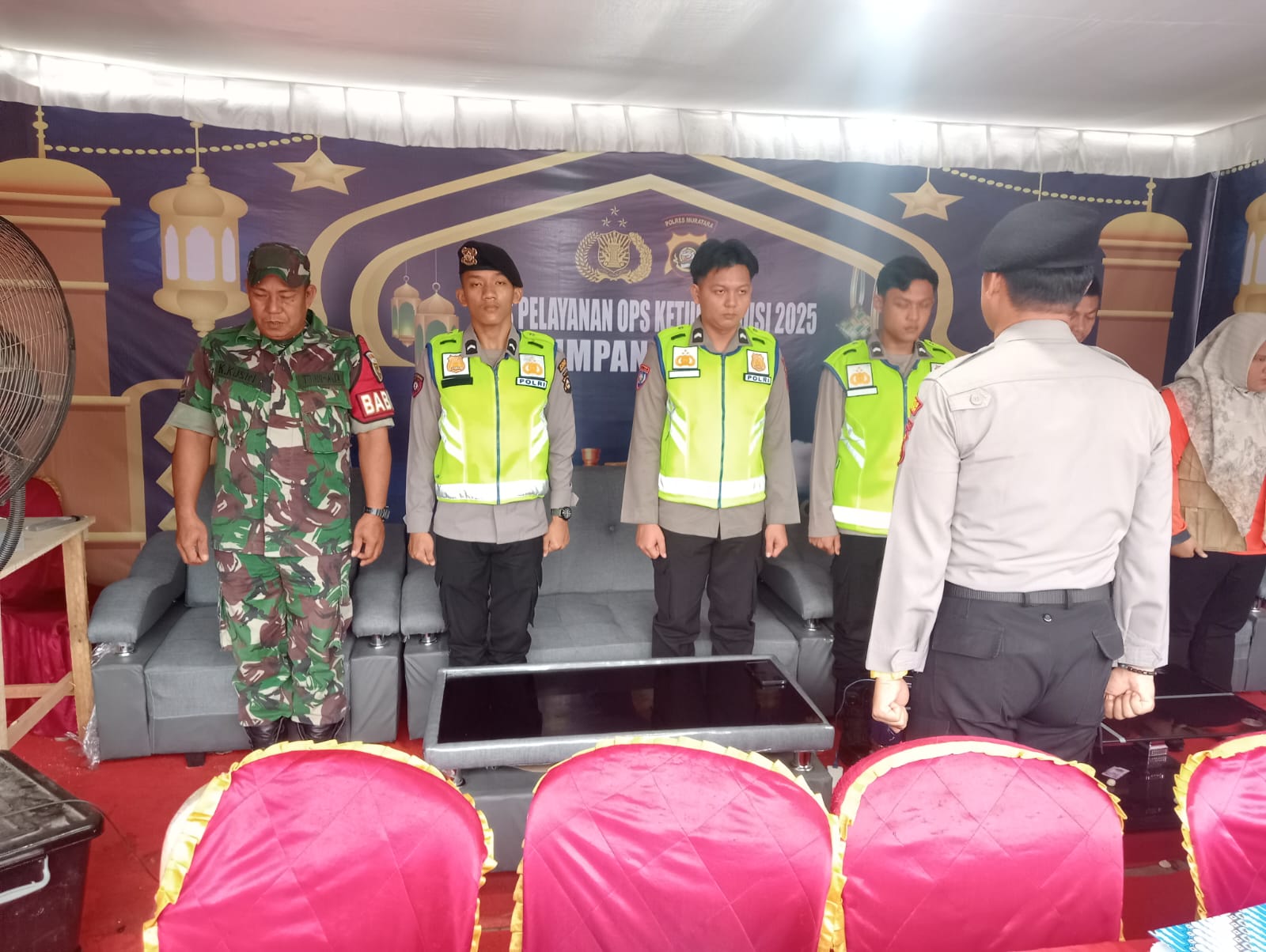 Pos Pengamanan ini berlokasi di Pos Induk, tepatnya di samping Rumah Makan Sederhana dan samping Masjid As-Suhada, Kabupaten Musi Rawas Utara (Muratara). Kegiatan ini bertujuan untuk menjaga keamanan, ketertiban, serta memberikan kenyamanan bagi para pemudik yang melintas di wilayah Kabupaten Muratara.