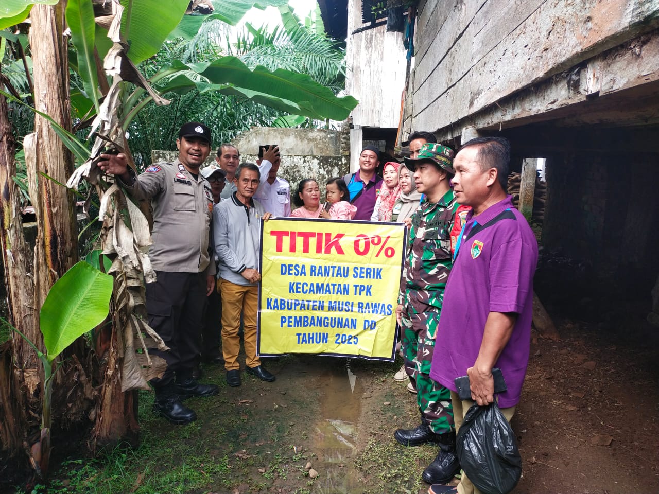 Rantau Serik, 09 April 2025, Babinsa Koramil 406-06/Tugumulyo, Peltu Zulrahman dan Serda Supriyadi menghadiri kegiatan penetapan titik nol persen dan Musyawarah Desa (MUSDES) di Desa Rantau Serik, Kecamatan Tiang Pumpung Kepungut, Kabupaten Musi Rawas.