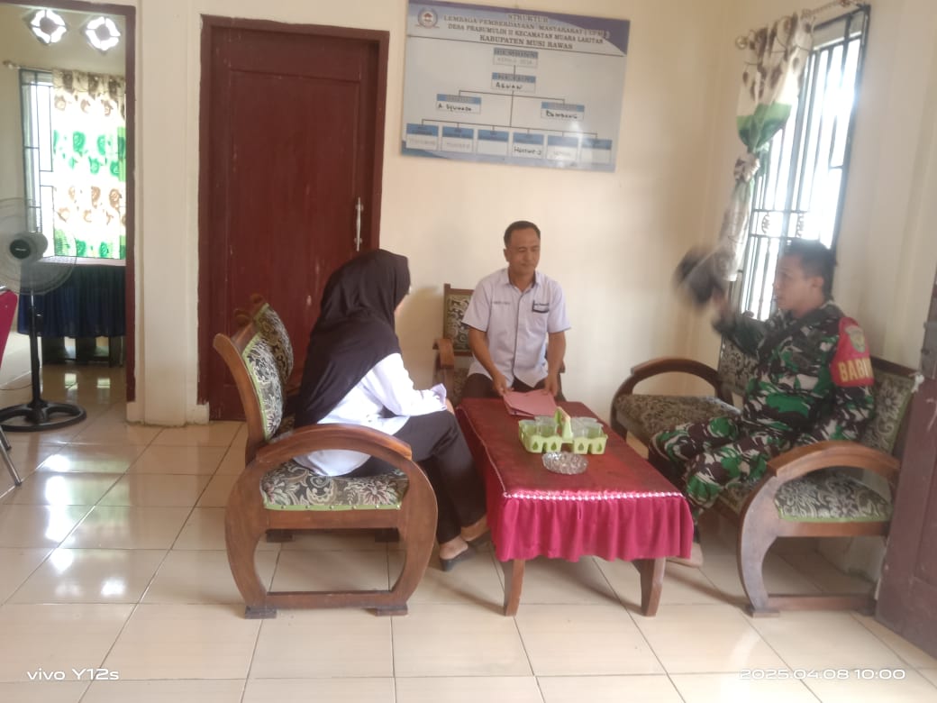 Kegiatan yang berlangsung di Kantor Desa Prabumulih 2 ini dilakukan dalam suasana hangat dan penuh kekeluargaan, bertepatan dengan momen Hari Raya Idul Fitri 1446 H. Serda Joni H menyampaikan bahwa kegiatan ini merupakan bentuk kepedulian dan peran aktif TNI dalam menjalin hubungan yang harmonis dengan masyarakat dan aparatur desa.