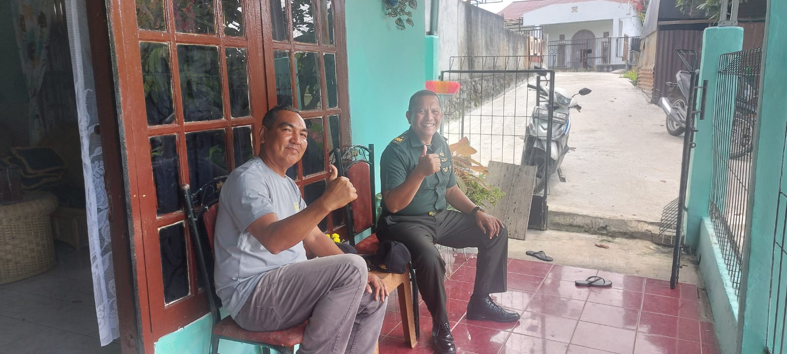 Babinsa Koramil 406-08 Lubuklinggau, Peltu Harahap, melaksanakan kegiatan komunikasi sosial (komsos) bersama warga binaannya di Kelurahan Tanjung Aman, Kecamatan Lubuklinggau Barat I, Kota Lubuklinggau.