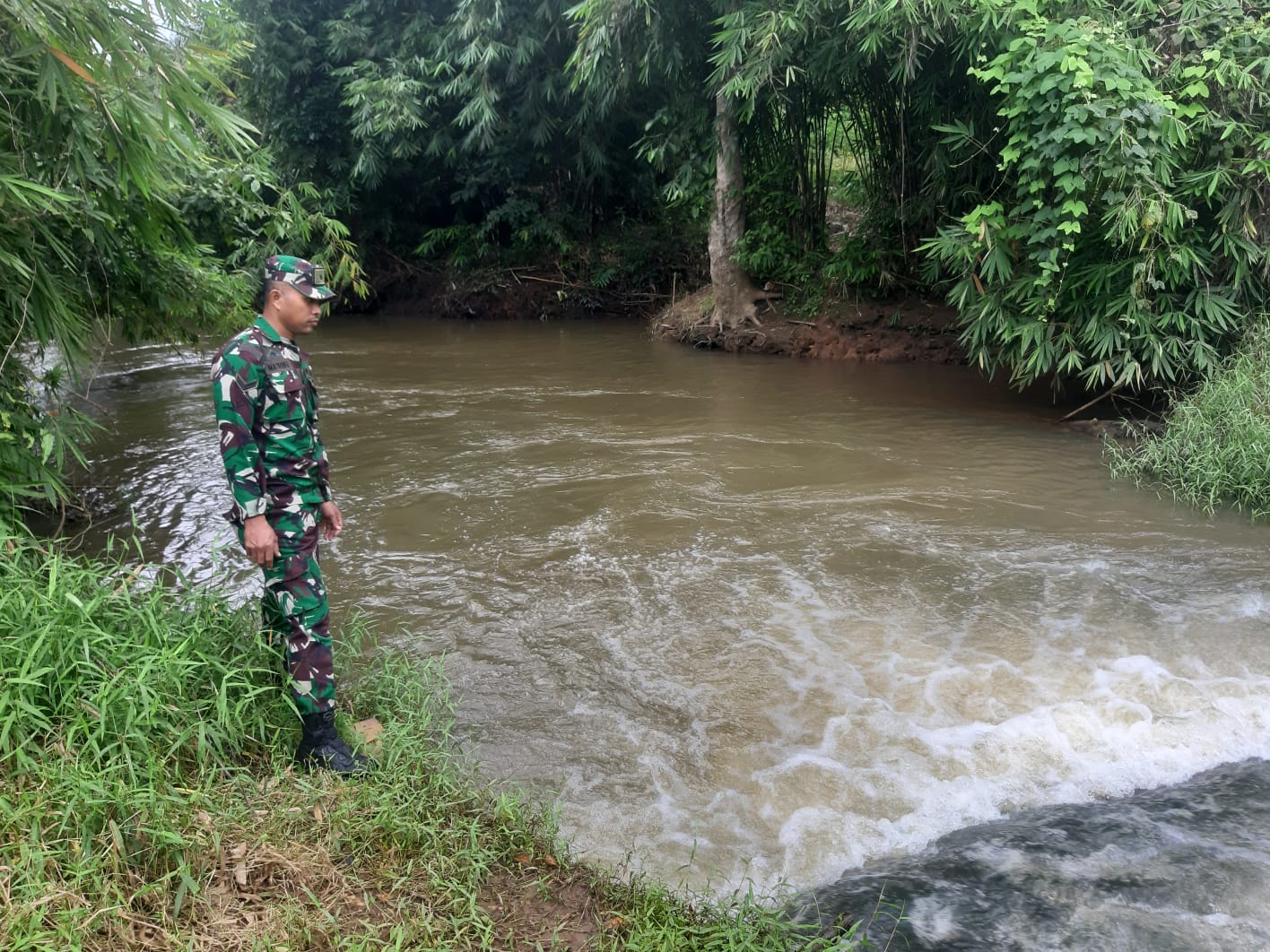 Babinsa Koramil 406-06/Tugumulyo Lakukan Pengecekan Aliran Sungai di Wilayah Rawan Banjir