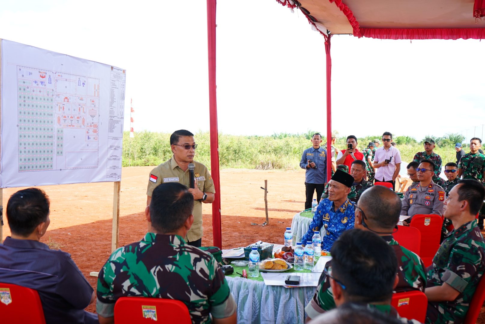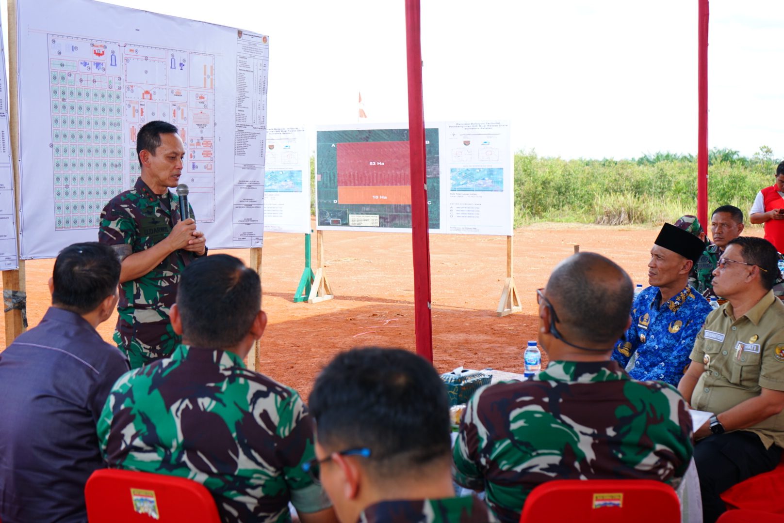 Saat dilokasi lahan Batalion Teritorial Pembangunan Komandan Kodim 0406 Lubuk Linggau Letkol Inf Arie Prasatyo Widyo Broto S.E menyampaikan paparan dihadapan Pangdam II Sriwijaya dan Danrem 044/Gapo. Dalam pemaparannya Dandim menjelaskan denah luas lahan, letak lahan, batas-batas lahan serta kondisi lahan.