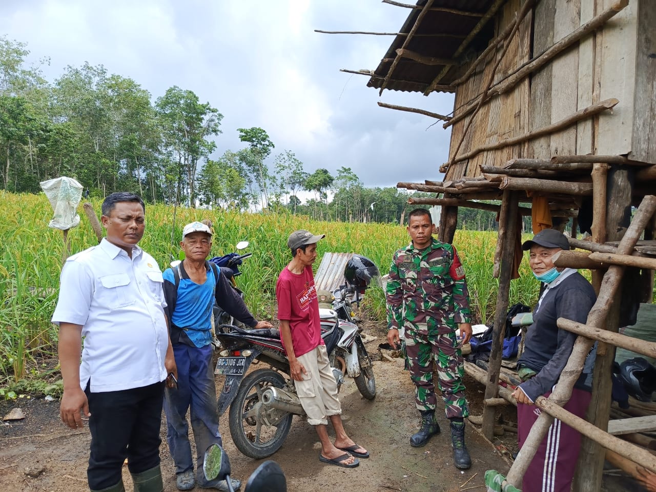 Lensa Garuda- Musi Rawas, Dalam upaya mendukung peningkatan hasil pertanian dan kesejahteraan petani, Babinsa Sertu Dodi Saputra dari Koramil 406-05/Muara Kelingi Kodim 0406 Lubuk Linggau bersama Petugas Penyuluh Lapangan (PPL) dari Dinas Pertanian setempat menggelar kegiatan penyuluhan kepada para petani di Lahan Bapak Mustofa tepatnya di Desa Sungai Bunut Kecamatan BTS Ulu Kabupaten Musi Rawas. Rabu (23/04/2025).
